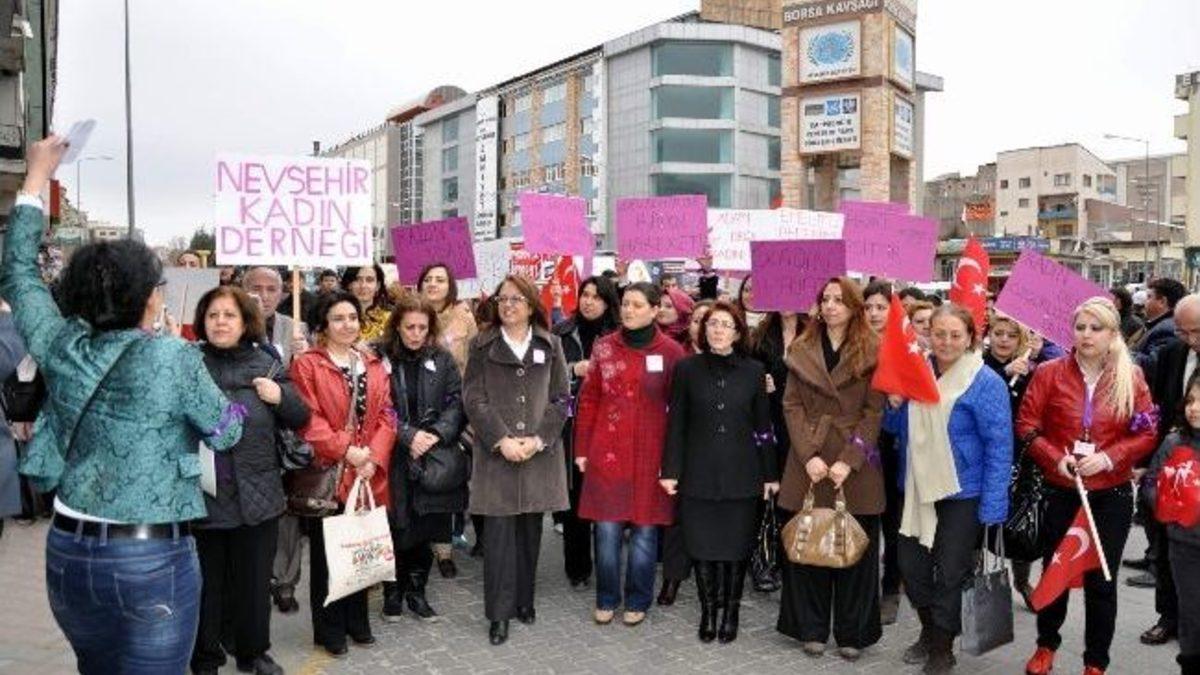 Nevşehir’de 8 Mart Dünya Kadınlar Günü dolayısıyla kadın sivil toplum örgütleri tarafından “Nevşehir’de Kadınlar El Ele” sloganıyla yürüyüş düzenlendi. Türk Kadınlar Birliği Nevşehir Şubesinin öncülüğünde NEVKAD ve Kapadokya Kadın Dayanışma Derneği tarafından düzenlenen etkinliğe Vali Abdurrahman Savaş, NEÜ Rektörü Prof. Dr. Filiz Kılıç, Garnizon Komutanı Jan. Kıdemli Albay Dursun Ertuğrul, İl Emniyet Müdürü Mehmet Yüksel, Vali Yardımcısı Vural Demirtaş, Belediye Başkan Yardımcısı Yusuf Kaya, bazı daire müdürleri ve siyasi partilerinin ve sivil toplum kuruluşlarının temsilcileri ile çok sayıda kadın katıldı.
