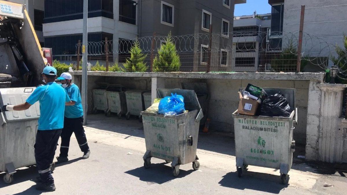 Nilüfer Belediyesi Temizlik İşleri Müdürlüğü’ne bağlı ekipler, bayram boyunca çöpleri toplayarak konteynerleri yıkadılar.