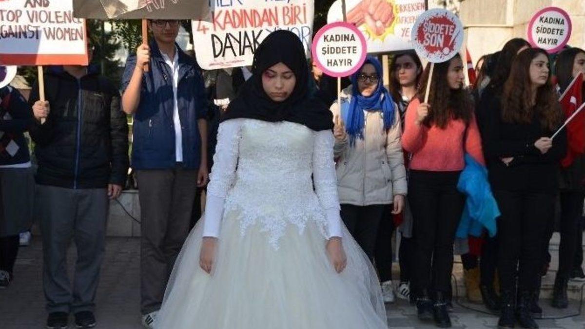 Samsun Bafra Anadolu Lisesi öğrencileri yaptıkları yürüyüş ve sokak tiyatrosu ile kadına yönelik şiddeti protesto ettiler.Öğrenciler, İngilizce öğretmeni Naim Okay öncülüğünde okul önünden Cumhuriyet Meydanı’na yürüdü. Atatürk Anıtı yanında toplanan öğrenciler, ellerindeki Türkçe ve İngilizce pankart ve dövizlerle kadına yönelik şiddeti kınadılar. Anadolu Lisesi öğrencileri son yıllarda artan kadına yönelik şiddetin toplumların kanayan bir yarısı olduğunu ve ivedilikle ele alınıp ortadan kaldırılması gerekliliğini hazırladıkları koreografilerle ifade ettiler.Öğrenciler, Diyojen gibi gündüz vakti ellerindeki fenerlerle sokakta kadına şiddet uygulamayan erkek arayarak kadına yönelik şiddetin son yıllarda ne kadar yaygınlaştığını ve neredeyse şiddet uygulamayan erkek olmadığını yaptıkları sokak gösterisiyle vurguladılar.Öğrencilerden İlayda Önder, aile içinde meydana gelen, cinsiyete dayalı, kadın üzerinde baskı ve üstünlük kurmayı amaçlayan, tehdit, dayatma, kontrol içeren; psikolojik, cinsel, ekonomik, fiziksel zararla sonuçlanan, kadının insan haklarını ihlal eden her türlü eylemin kadına yönelik şiddet olduğunu belirtti.Berfin Yaren Kurumahmutoğlu adlı öğrenci ise okuduğu basın açıklamasında, "Kadına yönelik şiddetin, son yıllarda yüzde bin 40 artmasına karşın, yüzde 48,5 oranındaki kadın, uğradığı şiddeti anlatamamakta, kadına yönelik şiddet konusunda; alt ve üst gelir grupları arasında da pek bir farklılık bulunmamaktadır. Kadına yönelik şiddet uzaklarda değil evimizde, sokağımızda her yerde. Bizler, Bafra Anadolu Lisesi olarak diyoruz ki; artık her gün televizyonlarda kadın cinayetlerini değil, kadının hak ettiği değeri izlemek ve 25 Kasım günlerini hiç ama hiç hatırlatmaya gerek görmeden yaşamak istiyoruz. Aynı zamanda medyanın kadına yönelik şiddet, taciz, tecavüz haberlerini kamuoyuna aktarırken etik davranmasını, kadının mağduriyetini arttıracak, haberi erotize eden, kadının yaşam biçimine ve özelliklerine odaklanan ve yaftalayıcı, küçük düşürücü ve şiddeti meşrulaştırıcı haber dilinden kaçınmasını da istiyoruz. Tek temennimiz kadınına yönelik şiddetin olmadığı bir dünya" şeklinde yapılan açıklamanın ardından öğrenciler ‘kadına şiddete hayır’ diyerek slogan attı.Okul Müdürü Yıldıray Baş, “Şiddete yönelik duyarlılık göstermek için biz bunu vizyon belgemize koymuştuk, Samsun Maarif Hareketi kapsamında. Bugün bu etkinliğimizi gerçekleştirdik. Toplumda bunun eksikliğini hissediyoruz. Bununla ilgili öğrencilerimize bu bilimci kazandırmaya ve toplumda duyarlılık oluşturmaya çalışıyoruz” açıklamasını yaptı.İngilizce öğretmeni Naim Okay ise, "Bugün burada toplumun dertleriyle dertlenen öğrencilerimizin beraber kadına yönelik şiddetin her türlüsünü kınarken modern toplumda kadının olması gereken yeri vurgulamak istedik. Ayrıca ellerindeki fenerlerle Diyojen misali öğrencilerimiz kadına şiddet uygulamayan erkek aradılar. Bu şu anlama geliyordu: Toplumda o kadar şiddet uygulayan erkek var ki artık onları fenerle Diyojen misali arıyor olduk. Bunun vurgusunu yapmak istedik. Umuyorum bu yaptığımız ekinliklerle beraber toplumdaki şiddete yönelik bakış açısı değişir, farkındalık oluşur. Buna katkı sağlamanın mutluluğunu yaşarız” ifadelerini kullandı.Gelinlik giyen 12 sınıf öğrencisi Kader Öneç de, “Şiddetle kadına şiddeti kınıyoruz ve kadına şiddet istemiyoruz. Toplumumuzda kadının sesi olmak istiyoruz. Onları bilinçlendirmek istiyoruz. Kesinlikle kadınlarımızın arkasındayız. Hem erkekleri hem de kadınlarımızı bilinçlendirmek için buradayız” diye konuştu.