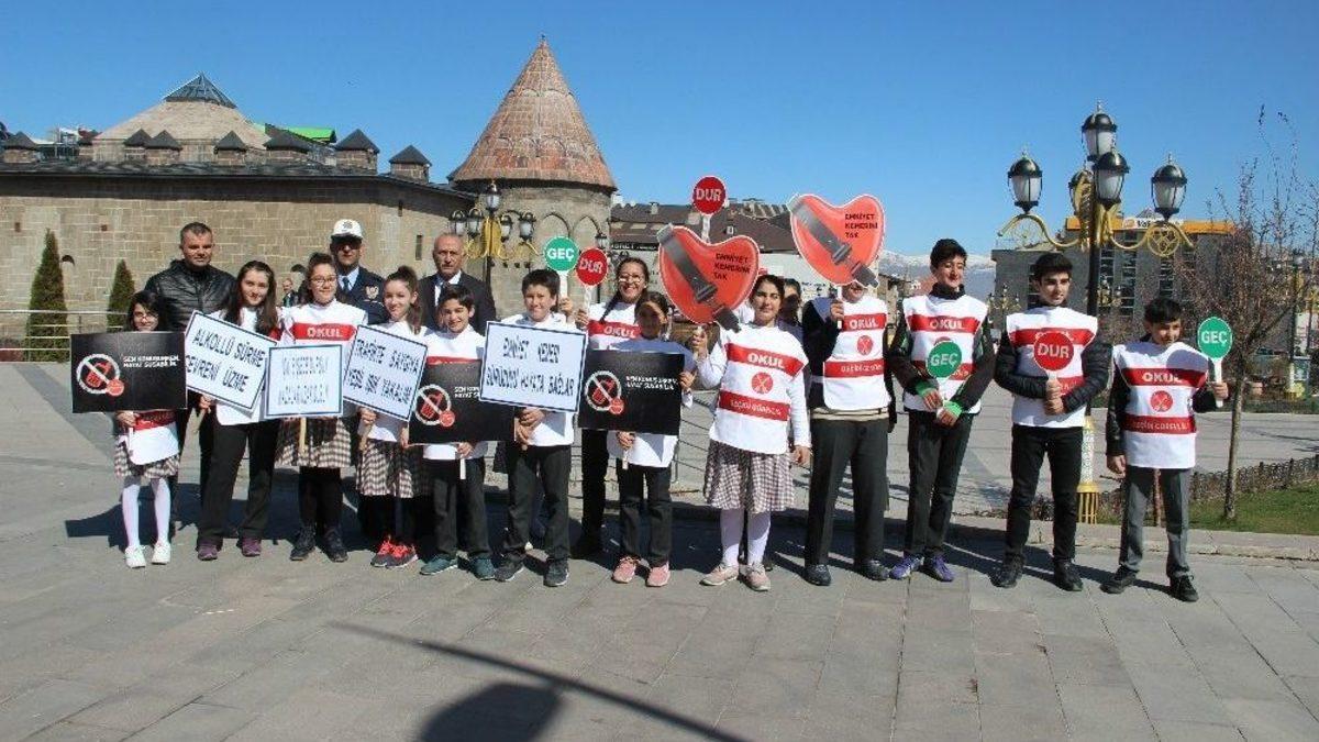 Polis Teşkilatının kuruluşunun 173. yıldönümü etkinlikleri kapsamında Erzurum Cumhuriyet caddesinde polis memurları öğrencilerle birlikte trafik denetimi yaptılar.Erzurum Kültür Kurumu Ortaokulu 7. sınıf öğrencileri ilk önce polis teşkilatının kuruluşu münasebetiyle polis memurlarını tebrik ettiler. Ardından polis memurlarıyla birlikte trafiğe çıkan öğrenciler durdurdukları araçlarda emniyet kemeri kontrolü yaptılar. Emniyet kemeri takan sürücüleri tebrik eden öğrenciler emniyet kemeri takmayan sürücülere ise emniyet kemerinin önemini anlattılar.Trafik kurallarını öğrencilere aşılamak için böyle bir etkinlik yaptıklarını ifade eden Trafik Denetleme Şube Müdür Yardımcısı Murat Parmaksızoğlu, “Burada bulunmamızın amacı Emniyet Teşkilatının 173. kuruluş yıldönümünü kutlamak ve öğrencilerimize trafik bilincini aşılamak. Trafik kuralların topluma anlatmak için öğrencilerle bir araya gelip 173. Kuruluş yıl dönümünü birlikte yapmak istedik” diye konuştu.Öğrencilerinin böyle bir organizasyonda polislerle birlikte olmasından mutlu olduğunu vurgulayan Kültür Kurumu Ortaokulu Müdürü Kerim Aydemir, “Emniyet teşkilatımızın kuruluşunun 173. yıldönümünü kutluyorum. Bu vesileyle bugünün küçükleri geleceğin büyükleri olan çocuklarımızı bilinçli sürücü bilinçli vatandaş olarak yetişmeleri için uygulamalı bir eğitim yaptık. Emniyet görevlisi memur arkadaşlarımız da çocuklarımıza yardımcı oluyorlar trafik kurallarını anlatıp aşılıyorlar böyle bir projede bulunduğumuz için çok mutluyuz” dedi.Öğrenciler ise böyle bir etkinlik kapsamında hem Polis Teşkilatının kuruluşunun 173. yıldönümünü kutlayıp hem de trafik kurallarını öğrendikleri için mutlu olduklarını söylediler.Etkinlik Erzurum İl Emniyet Müdür Yardımcısı Halil Sündü’nün öğrencilere hediye vermesiyle sonlandı.