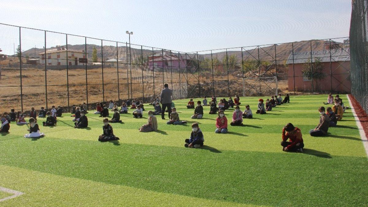 Sivas’ın Zara ilçesinde Mevlid-i Nebi Haftası münasebetiyle halı sahada öğrencilere “Peygamber Efendimiz ve Çocuklar konulu konferans düzenlendi.