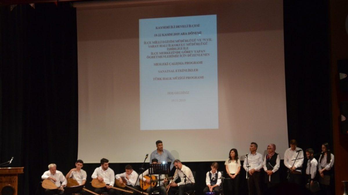 Develi’de 18-22 Kasım ara döneminde, İlçe Milli Eğitim Müdürlüğü ve 75. yıl Saray Halı İlkokulu Müdürlüğünce İlçe Merkezinde görev yapan öğretmenler için Türk Halk Müziği programı gerçekleştirildi.