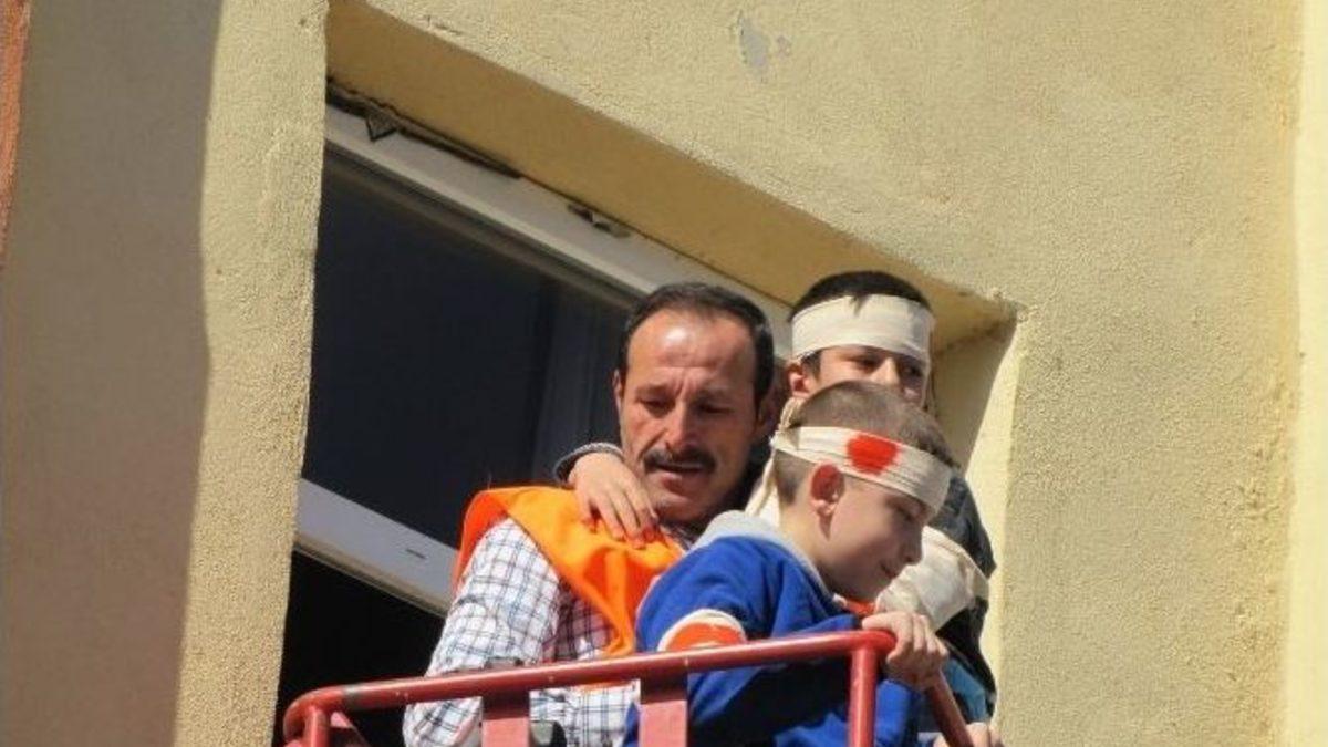 Kütahya’nın Hisarcık ilçesi Atatürk İlkokulu’nda Sivil Savunma Günü nedeniyle, deprem ve yangın tahliye tatbikatı yapıldı.Atatürk İlkokulu Müdürü İsmail Değirmenci, Tatbikat öncesi okuldaki mevcut söndürme, kurtarma, koruma ve ilk yardım ekiplerinin kendi bünyelerinde gerekli hazırlıkları yaparak öğrencileri yangın, deprem ve tahliye konusunda bilgilendirdiklerini söyledi.Müdür Değirmenci,”Hangi sınıfların nereden çıkacakları en ince ayrıntısına kadar planlandı. Yapılan deprem ve yangın tahliye tatbikatında en çok sevindiğimiz taraf hiçbir kargaşaya yer vermeden çok kısa sürede okulun boşaltılmasıdır. Daha sonra yaralı öğrenciler ilk yardım ekiplerimizin yaptığı müdahaleden sonra 112 Acil Sağlık Ekipleri tarafından sınıflardan sedyelerle alınarak gerekli tedavileri yapılmış, ayrıca okulun ikinci katında bulunan pencereden itfaiye ekipleri tarafından da yaralı öğrenciler başarıyla kurtarılmıştır. Daha sonra okul bahçesinde güvenli bir alana toplanan öğrencilerimize itfaiye ekiplerince yangının yangın söndürme tüpü ile nasıl söndürüleceği tatbiki olarak gösterilmiştir. Son olarak öğrencilerimiz tarafından Sivil Savunma Günü ile ilgili şiirler okundu. İlçemiz deprem bölgesinde ve fay hattı üzerinde olduğundan her zaman depreme ve yangına hazırlıklı olmak zorundayız. Tatbikatın düzenlenmesinde emeği geçen herkese, İlçe itfaiyesine, 112 Acil Yardım Servisine ve emniyet güçlerine çok teşekkür ediyorum“ diye konuştu.(MA-EFE)