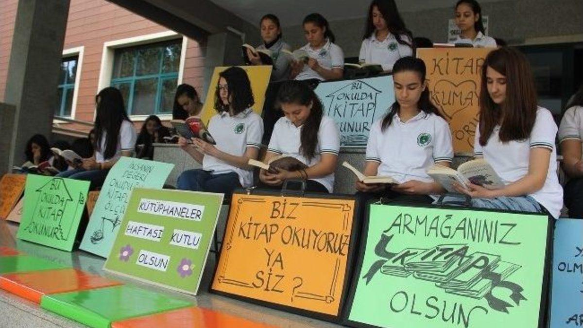 Adana'da bir okulun öğretmen ve öğrencileri, hızla gelişmekle birlikte değişen dünyada teknolojinin yol açtığı olumsuzluklara dikkat çekmek amacıyla kitap okuma etkinliği yaptı.Sabancı Kız Teknik ve Meslek Lisesi'nde Edebiyat ve Kütüphane Kulübü öğretmenleri, Kütüphane Haftası'nda, hızla değişen dünyada teknolojinin yarattığı olumsuzluklara dikkat çekmek ve bu yarışı kitapların kazanması gerektiğine vurgu yapmak amacıyla kitap okuma etkinliği düzenledi.Merkez Seyhan ilçesi Atatürk Caddesi önünde bulunan okulun girişinde toplanan öğrenciler, “Her Zaman Kitap, Biz Kitap Kurduyuz Ya Siz?, Armağanınız Kitap Olsun” yazılı pankartların arasında, okuldan veya kendi kütüphanelerinden getirdikleri kitapları okudu.Yaklaşık 3 saat süren etkinliğe, farklı sınıflardan dönüşümlü olarak 250 öğrenci katıldı.