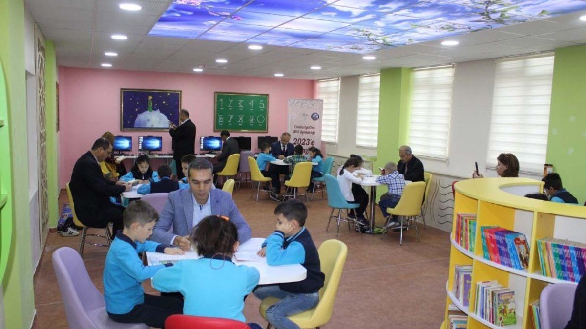 Kaymakam Çiçek ve beraberindekiler, okula ait -Z- kütüphanesinde öğrencilerle bir araya gelerek 15 dakika boyunca birlikte kitap okudu.