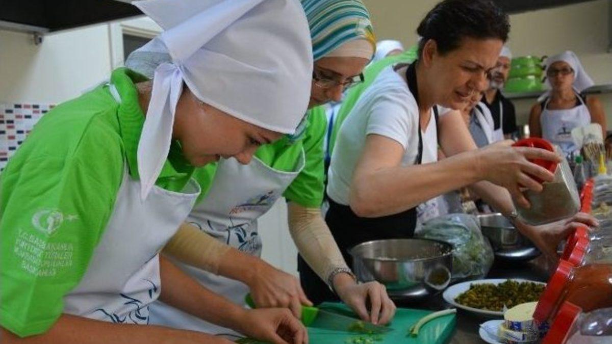 Bursa’ya Türkçe öğrenmek için gelen yabancı öğrenciler, bir yandan şehrin tarihi ve turistik mekanları gezdi, diğer taraftan da mutfağa girip Türk yemeklerini yapmayı öğrendi.Ankara Üniversitesi TÖMER Bursa Şubesi ve Başbakanlık Yurtdışı Türkler ve Akraba Toplulukları Başkanlığı işbirliğiyle düzenlenen ‘Türkçe Yaz Okulu’ programı dolayısıyla 23 ülkeden 28 öğrenci, Türkçe öğrenmek için geldikleri Bursa’da Türk gelenek ve göreneklerini de yakından tanıyor. Bursa’da tarihi ve turistik yerleri gezen, çeşitli faaliyetlere katılan öğrenciler, Türk kültürünün önemli bir parçası olan ‘Türk ve Osmanlı Gastronomi Kültürü’ hakkında bilgi sahibi olmak için BUSMEK Mesleki Eğitim Merkezi’ne konuk oldu.BUSMEK’in ‘Yiyecek İçecek Hizmetleri’ alanında Mesleki Eğitim Merkezi’nde açılan ‘Endüstriyel Mutfak’, Bursalıların olduğu kadar yabancıların da ilgi odağı oluyor. Bursa’ya Türkçe öğrenmek için gelen yabancı öğrenciler Mesleki Eğitim Merkezi’nde BUSMEK usta şefi Şerife Kutlu ve aşçılık kursiyerleri eşliğinde Osmanlı saray mutfağına dair püf noktaları öğrenerek, bu eşsiz lezzetleri ülkelerinde tanıtmak için yemek yaptı.Mutfağa girerek ‘lebeniye çorbası, humus, kuru erik yahnisi, paşa pilavı, keşkül-ü fukara tatlısı ve cacıktan oluşan zengin menüyü hazırlayan gençler, hem eğlendiler, hem de Türk mutfağını öğrendiler. Hazırladıkları yemeklerin tabak süslemelerini de yaptıktan sonra hep birlikte tadına bakan öğrenciler, Türk mutfağının lezzetine hayran kaldı.Öğrenciler Büyükşehir Belediyesi’ni de ziyaret ettiler. Öğrencileri Büyükşehir Belediyesi Başkanvekili Atilla Ödünç ağırladı. Bursa ve Büyükşehir Belediyesi’nin çalışmaları hakkında gençleri bilgilendiren Ödünç, Türkçe’yi kısa sürede öğrenen gençleri tebrik etti.
