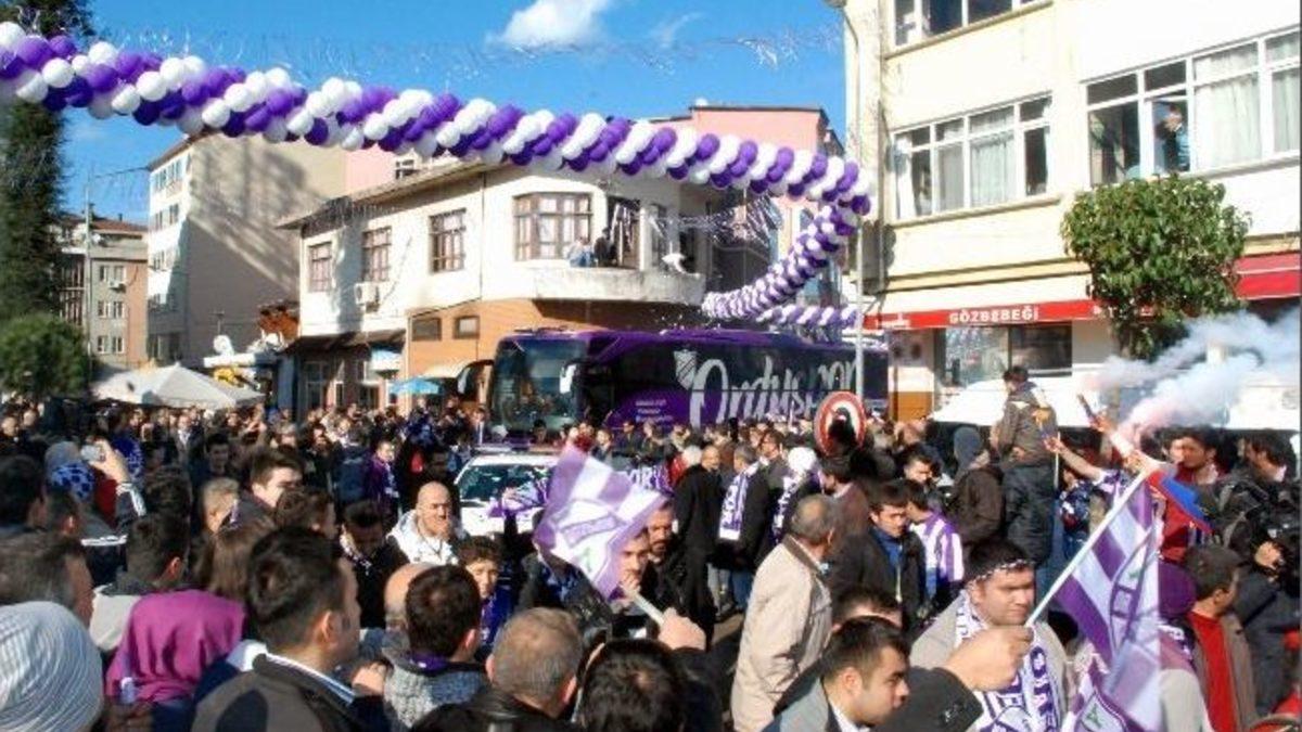 Orduspor son haftalarda sıkıntılı günler yaşarken, Orduspor taraftarları maça saatler kala Ordu sokaklarını mor-beyaz renklere bürüdü. Ellerinde Orduspor bayrakları ile sokakları dolduran taraftarlar, takım otobüsünü Ordu Belediye Bandosu eşliğinde stada tezahüratlar ile götürdü.