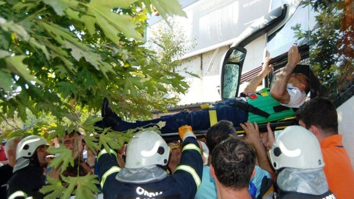 Ordu’nun Fatsa ilçesinde otobüsün önce kamyonete, ardından çay ocağına çarptığı kazada 2’si ağır 8 kişi yaralandı.Edinilen bilgiye göre, Bursa’dan Trabzon’a gittiği öğrenilen Fikri K. idaresindeki 61 S 0545 plakalı yolcu otobüsü, Fatsa Büyük Sanayi Sitesi Kavşağı’nda dönüş yapmak isteyen Erdem Ö.’nün kullandığı 52 KH 138 plakalı kamyonetle çarpıştı. Kazada kamyonetin üzerinden geçen otobüs sanayi sitesindeki çay ocağının duvarına çarparak durabildi. Kazada kamyonetin sürücüsü Erdem Ö., yanında bulunan arkadaşı Muharrem Otur ağır yaralanırken, otobüsün sürücüsü Fikri K., yedek kaptan Mutlu Musmul, otobüste bulunan Huri Kaya, Fatma Kahveci, Irmak Karson ve Gülname Karson yaralandı.Kaza esnasında otobüste bulanan yolcular ise kaza sonrası hemen kendilerine dışarı attı. Yaralılara yardım eden yolcular kaza anını hatırlamadıklarını, bazıları ise önlerine kamyonetin çıktığını söyledi.“Otobüsü görünce kaçtım”Yolcu otobüsünün sanayi sitesi içindeki çay ocağına girdiği anda içeride bulunan iş yeri sahibi Ahmet Kesi, “Bir ses olduğunu duydum, camdan bakarken üzerime otobüsün geldiğini gördüm ve hemen o an kendimi dışarı attım” dedi.Kazayla ilgili inceleme devam ediyor.Kaza anı güvenlik kamerasındaOtobüs ile kamyonetin çarpışma esnasında kaza güvenlik kameralarına yansırken, kazada yaralı sayısının çok olmaması ise sevindirdi.Kazayı yara almadan atlatan yolcular başka bir otobüsün olay yerine gelmesi ile memleketlerine gönderildi.