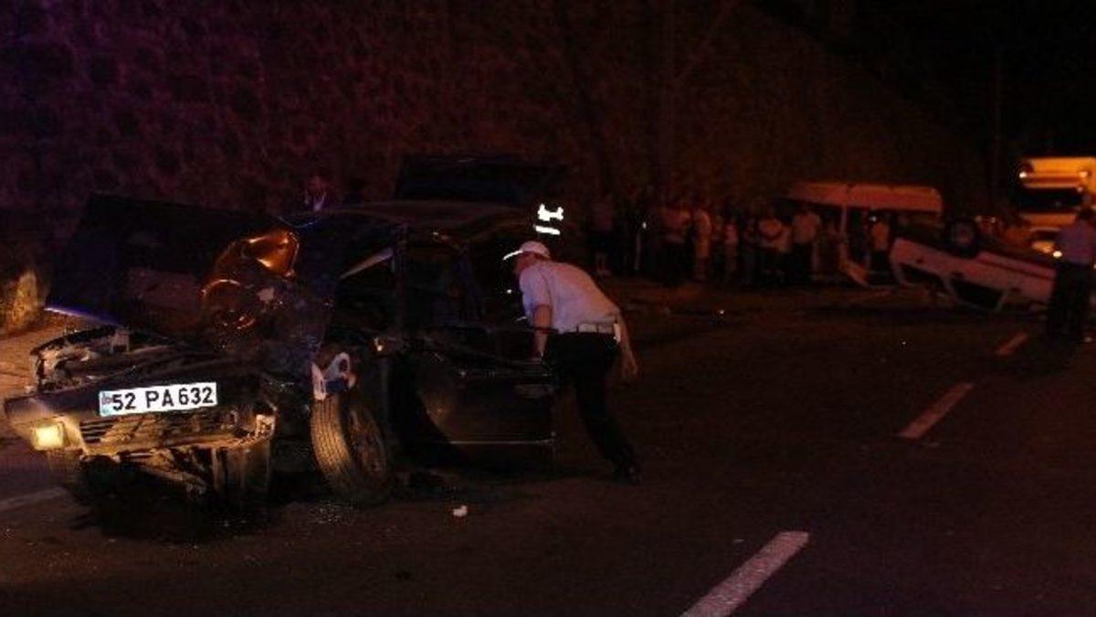 Ordu’da meydana gelen trafik kazasında 1’i ağır 5 kişi yaralandı.Kaza, Altınordu ilçesi Güzelyalı mevkii Ordu-Samsun Karayolu üzerinde saat 23.30 sıralarında meydana geldi . Edinilen bilgiye göre, Ordu yönünde ilerleyen Harun Büyükkol idaresindeki 52 DD 516 plakalı araç direksiyon hakimiyetini kaybetti. Direksiyon hakimiyetini kaybeden Büyükkol, karşı şeride geçerek Murat Baş’ın kullandığı 52 PA 632 plakalı araca çarptı. Çarpanın etkisi ile bir araç takla atarken diğer araç ise yan döndü. Kaza sonrası araçlarda bulunan Murat Baş(26), Yavuz Arı(51), Demet Gündüz(28), Haran Büyükkol ve kimliği belirlenemeyen 1 kişi olmak üzere 5 kişi yaralandı. Olay yerine gelen 112 Acil Servis ekipleri yaralıları ilk müdahalenin ardından Ordu Devlet Hastanesi ile özel hastanelere götürdü. Yaralılardan Harun Büyükkol’un durumunun ağır olduğu belirtildi.Polis olayla ilgili soruşturma başlattı.