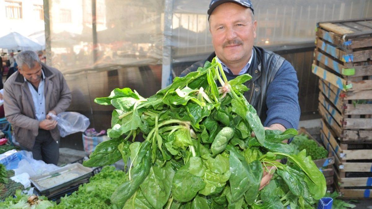 Kütahya’nın Simav ilçesindeki halk pazarında satılan organik ıspanaklar yoğun ilgi görüyor.