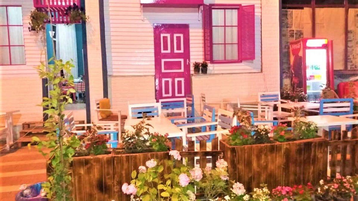 Pembe panjurları, beyaz mavi renklerden oluşan iç ve dış mekan dekorasyonu ile ırmak kıyısında kendini gösteren Kafede misafirlerini ev yapımı ikramlıkları ile ağırlayarak, Ege’de bir mekanda hissini veriyor.