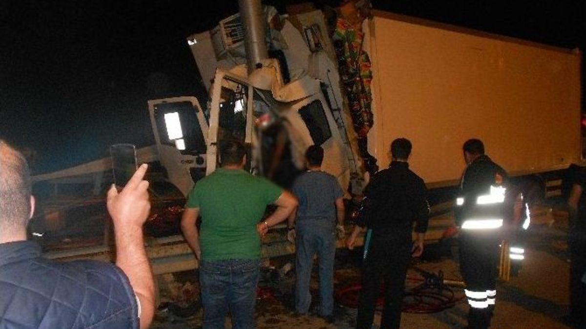 Antalya’dan yüklediği karpuz ve marul yükünü İstanbul’a götüren kamyon Bilecik Osmaneli Kavşağı’nda sürücüsünün direksiyon hakimiyetini kaybetmesi sonucu bariyerlere çarptı. Sürücüsü öldü yanında yolcu olan oğlu ise yaralandı.Edilinen bilgiye göre Kaza, Bilecik Sakarya Yolu 12’inci km’si Osmaneli Kavşağı’nda meydana geldi. Antalya’dan yüklediği karpuz ve marul yükünü İstanbul’a götürmekte olan 07TCA29 plakalı kamyonun şoförü(42) Ahmet Bardakçı, aracının direksiyon hakimiyetini kaybederek bariyerlere çarptı. Çarpmanın etkisiyle bariyerlere ok gibi saplanan kamyon, sürücüsünü araç içinde sıkıştırdı. Vatandaşların ihbarıyla olay yerine itfaiye, AKUT ve sağlık ekibi sevk edildi. İtfaiye ve AKUT ekiplerinin çalışması sonucu sıkıştığı kamyondan çıkarılan sürücü, sağlık ekibine teslim edildi. Ancak sağlık ekibinin yaptığı muayenede sürücünün hayatını kaybettiği tespit edildi. Araç içinde yolcu olarak bulunan sürücünün oğlu E.K. Bardakçı (10) yaralı olarak araçtan çıkartıldı. Yaralı, Osmaneli Devlet Hastanesinde tedavi altına alındı. Sağlık durumunun iyi olduğu öğrenildi. Ekiplerce kazayla ilgili soruşturmanın devam ettiği öğrenildi.