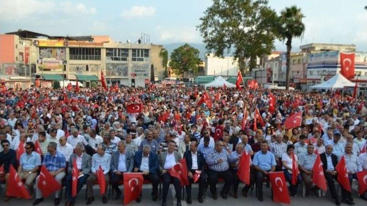 Tüm Türkiye’de düzenlenen Demokrasi ve Şehitler Mitingi, Osmaniye’de coşkuyla yapıldı.Cumhuriyet Meydanı’nda düzenlenen Demokrasi ve Şehitler Mitingi’nde MHP İl Başkanı Fahri Kuyulu, CHP İl Başkanı Nedim Ünlü’nün ses tellerindeki rahatsızlığından dolayı İl Eski Başkanı Kemal Tabak, AK Parti İl Başkanı Hamza Tor, Belediye Başkanı Kadir Kara, AK Parti Osmaniye Milletvekilleri Dr. Suat Önal ve Mücahit Durmuşoğlu, yaptıkları konuşmalarda 15 Temmuz gecesi yaşanan darbe girişimini lanetleyerek, Türk milletinin verdiği örnek demokrasi mücadelesinden övgü ile bahsederek, birlik beraberlik mesajları verdiler. Belediye Başkanı Kadir Kara ayrıca Karaçay Rekreasyon alanı üzerinde yapılan asma köprüye ise 15 Temmuz Şehitleri Köprüsü isminin verilmesini önerdi.Son olarak konuşma yapan Vali Kerem Al ise 23 gündür Demokrasi Nöbeti’nde meydanı dolduran ve özverili olarak demokrasi ve milli iradeye sahip çıkan Osmaniyelilere teşekkür etti. Vali Al ayrıca organizasyonların düzenlenmesinde yer alan ve emeği geçenleri de tebrik ederek teşekkür etti.Program İstanbul Yenikapı’da düzenlenen Demokrasi ve Şehitler Mitingi’nin meydana kurulan dev ekrandan canlı olarak sunulmasıyla devam etti.