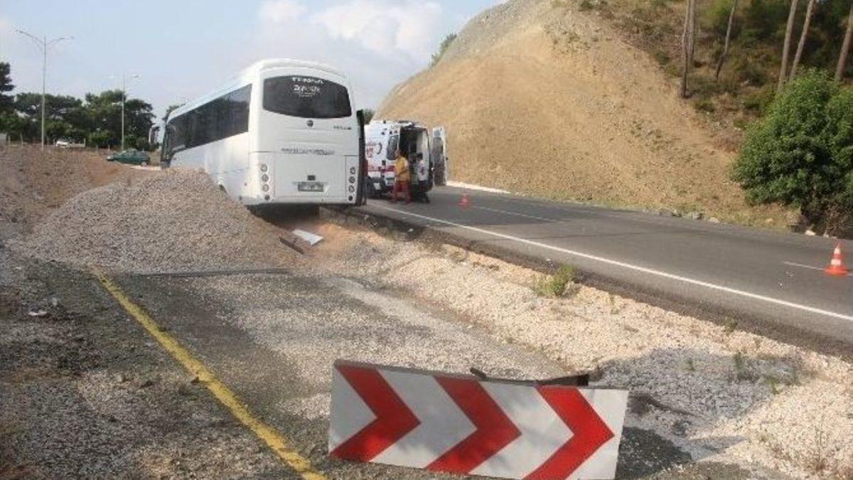 Antalya'nın Kemer ilçesinde üç otelin personelini taşıyan servis otobüsünün yoldan çıkarak mıcır yığınına çarpması sonucu 20 kişi yaralandı.Edinilen bilgiye göre, Tekirova Mahallesi'nde bulunan üç otelin personelini Antalya'dan getirmekte olan Mehmet Nuri Özel idaresindeki 07 FVM 73 plakalı servis otobüsü, D-400 Karayolu Cumayeri mevkiinde viraja girerken yoldan çıktı. Trafik işaret levhasını parçalayarak orta refüjdeki boş alana giren otobüs, yol inşaatı için yığılmış mıcır yığınına çarptı. Çarpma sırasında uyumakta olan 19 otel personeli, otobüsün ön kısmına doğru yığılarak yaralandı. Kemer'deki kamu ve özel hastanelere ait ambulanslar, itfaiye acil kurtarma ekibi ve jandarma ekipleri kaza yerine sevkedildi. Kemer'deki hastanelere kaldırılan yaralı sürücü ve 19 yolcudan bazıları Antalya'daki hastanelere sevkedildi.