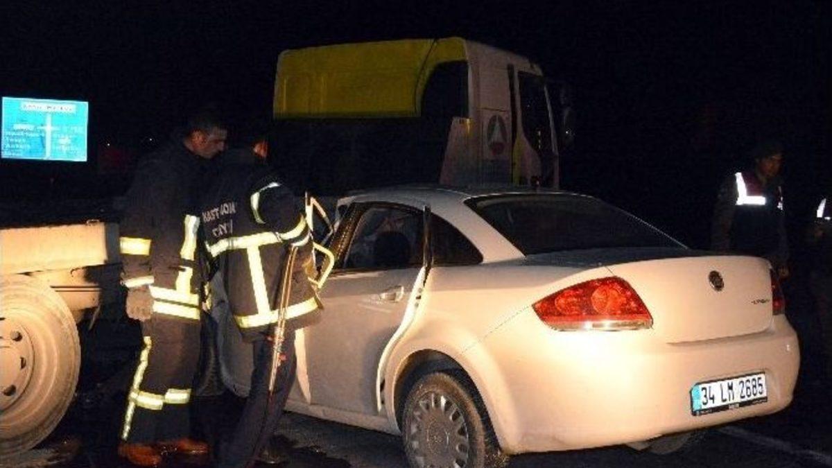 Kastamonu’da oto kurtarıcının altına giren otomobilin sürücüsü, araç içerisinde sıkışarak hayatını kaybetti.Edinilen bilgiye göre, Kastamonu-Taşköprü karayolu 3’üncü kilometresinde Sinan Ahmetoğlu (20) idaresindeki 34 LM 2685 plakalı otomobil, kavşaktan dönmek isteyen Nuri M. (33) yönetimindeki 78 AY 178 plakalı oto kurtarıcının altına girdi. Soğuk hava ve gizli buzlanmanın da etkisiyle otomobili durduramayan sürücü Sinan Ahmetoğlu, kurtarıcının altında otomobil içerisinde sıkıştı. Kazayı gören benzinlik istasyonu çalışanları olayı 112 Acil Sağlık ekiplerine ve emniyet güçlerine bildirdi. Olay yerine gelen emniyet güçleri çevrede geniş güvenlik önlemleri aldı. Sağlık ekipleri de, otomobil içerisinde sıkışan sürücüyü hayata geri döndürmek için kalp masajı uyguladı. Yapılan tüm müdahalelere rağmen otomobil içerisinde sıkışan sürücü Sinan Ahmetoğlu, hayatını kaybetti.Araç içerisinde sıkışan Sinan Ahmetoğlu, itfaiye ekiplerinin yaklaşık 1 saatlik çalışması sonrası sıkıştığı yerden çıkartıldı. Tabuta konulan Sinan Ahmetoğlu, cenaze aracına bindirilerek Kastamonu Dr. Münif İslamoğlu Devlet Hastanesinin morguna kaldırıldı.Kazadan sonra şok geçiren ve olay yerinden ayrılan kurtarıcının sürücüsü Nuri M., bir süre sonra kaza yerine geri dönerek jandarma ekiplerine teslim oldu. Gözaltına alınan kurtarıcının sürücüsü, ifadesi alınmak üzere karakola götürüldü.Öte yandan kaza yapan araçların olay yerinden kaldırılması sonrası karayolları ekipleri yola akan yağ ve mazotu temizleyerek kumladı.