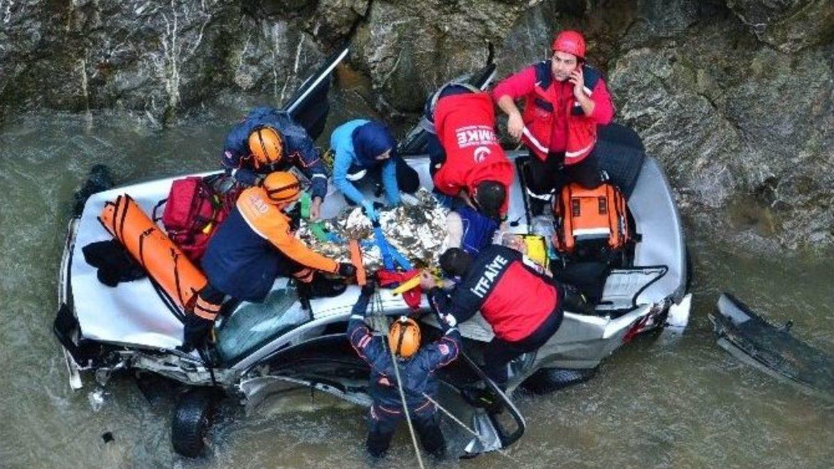 Zonguldak’ta iki maden işçisi otomobille 20 metreden dereye uçtu. Kazada 1 kişi hayatını kaybetti, 1 kişi yaralandı.Edinilen bilgiye göre kaza, saat 16.00 sıralarında Zonguldak-Ankara karayolunun 8. kilometresinde meydana geldi. Zonguldak istikametinden Ankara istikametine giden İbrahim Kiren (32) idaresindeki 06 DG 2222 plakalı otomobil kontrolden çıktı. Önce aydınlatma direğine çarpan araç ardından 20 metreden dereye uçtu.Olayın ardından UMKE, AFAD ve 112 ekipleri olay yerine sevk edildi. Jandarma ve trafik polisleri çevrede geniş güvenlik önlemi aldı. Kazada araçtan yaralı kurtulan Özcan Korkut isimli maden işçisi ambulansla Bülent Ecevit Üniversitesi Hastanesi’nde tedavi altına alındı.Ağır yaralanan maden işçisi İbrahim Kiren için UMKE ve 112 ekipleri olay yerinde ilk müdahaleyi yaptı. Yaklaşık bir saat boyunca kalp masajı yapılan Kiren; sedyeye konularak vinçle yola çıkartıldı. Ambulansla Atatürk Devlet Hastanesi’ne kaldırılan Kiren, yapılan tüm müdahalelere rağmen kurtarılamadı.BEÜ Hastanesi’nde tedavi altına alınan Özcan Korkut’un ise sağlık durumunun iyi olduğu belirtildi. Kazayı haber alan Genel Maden İşçileri Sendikası Kozlu Şube Başkanı Hüseyin Kolçak ve yönetimi olay yerine geldi. GMİS Yönetim Kurulu da hastaneye gelerek kaza hakkında bilgi aldı. Kiren ve Korkut’un TTK Kozlu Müessesinde çalıştıkları öğrenildi.Kazayla ilgili soruşturma sürüyor.