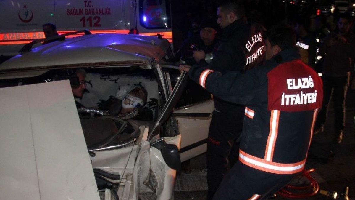Elazığ’da iki aracın karıştığı kazada sıkışan sürücü sağlık, itfaiye ve AFAD ekipleri tarafından sıkıştığı yerden çıkarılarak hastaneye kaldırıldı.Kaza, merkez Malatya Caddesinde Tofaş kavşağında meydana geldi. Edinilen bilgiye göre, Malatya istikametine giden 06 YNJ 16 plakalı otomobil ile Saraybosna Caddesinden gelen 44 DH 517 plakalı otomobil kavşakta çarpıştı.Çarpışmanın etkisi ile savrulan 44 plakalı otomobil, yön levhasına vurarak durdu. Hurdaya dönen araçta sıkışan sürücüyle birlikte iki kişi yaralandı. Kazayı görenler, durumu sağlık, itfaiye ve AFAD ekiplerine haber verdi.Sağlık ekipleri araç içerisindeki yaralıya müdahale ederken, kurtarma ekipleri de aracı keserek ismi öğrenilemeyen sürücüyü sıkıştığı yerden çıkardı. Yaklaşık yarım saat süren çalışma ile kurtarılan sürücü ile arkadaşı ambulanslarla kentteki hastanelere kaldırıldı.Polis kaza ile ilgili olay yerinde inceleme yaptı.Yapılan incelemede 44 plakalı araçtan çok sayıda alkol şişesi çıktı.