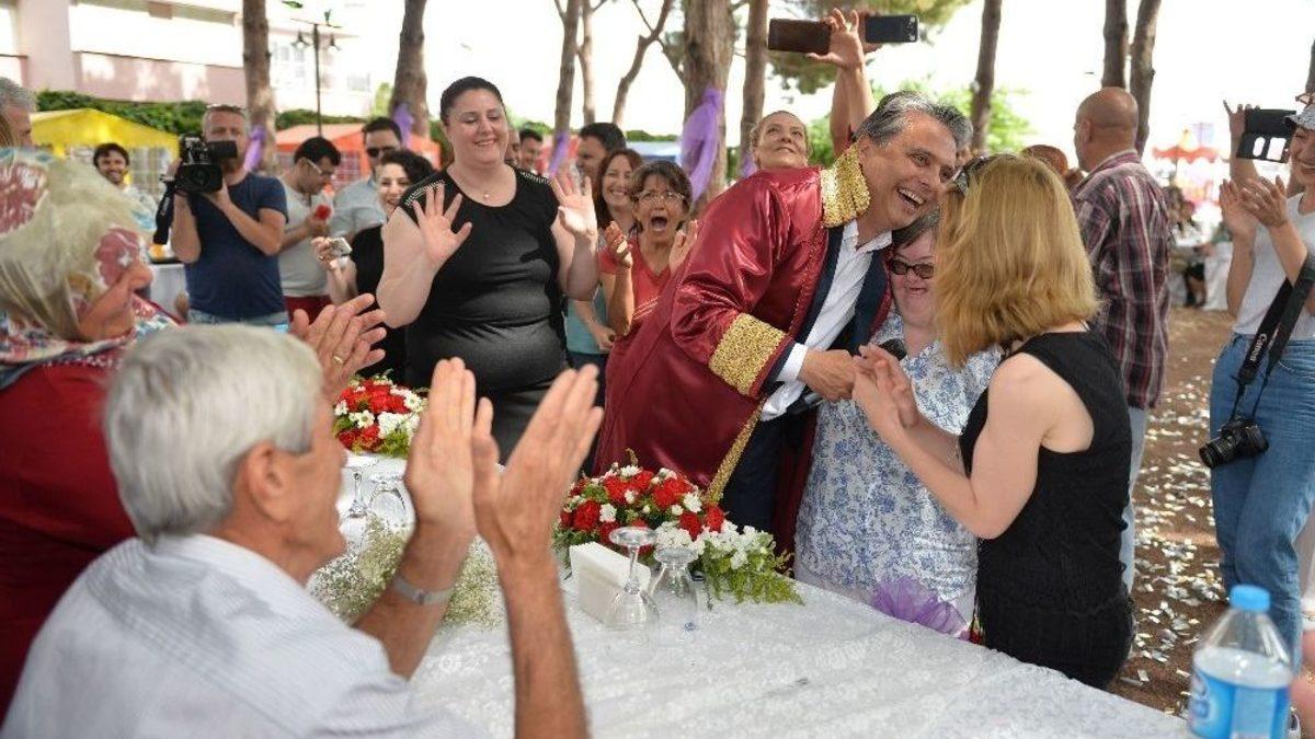 Muratpaşa Belediyesi ve Adalya Vakfı, evliliklerinde her türlü engeli aşarak özel çocuklarıyla mutlu bir yuvaya sahip 13 çiftin nikahlarını tazeledi. Engelsiz Kafe’de düzenlenen ve Başkan Ümit Uysal’ın kıydığı nikahın gerçek imzaların atıldığı günden tek farkı çiftlerin bu kez özel çocukları yanlarında olmasıydı.13 çiftin konfetiler eşliğinde girdiği alanda önce müzik işliğinde çiftler birbiriyle dans ettiler.Engelli çocukları olmasına rağmen bütün güçlükleri aşarak evliliklerini devam ettirip çocuklarıyla aynı çatı altında hayatlarına devam eden çiftler ardından nikah masasına oturdu. Çiftlerin ilk düğün fotoğraflarının da sergilendiği nikah töreninde konuşan Muratpaşa Belediye Başkanı Ümit Uysal, "Bugün sembolik ama sıra dışı bir işlem yapıyoruz Yaşamın engellerine dayanamayıp birlik ve bareberliklerini sürdüremeyen insanlarımıza olumlu örnekleri göstermek istiyoruz. Yaşamın bütün güçlüklerine rağmen birlik ve beraberliklerini daha da pekiştirerek devam ettiren çiftlerimizin nikahını tazeliyoruz.Onların mutluluğunu , örnek hallerini, sevgisini saygısını bütün ülkemize dünyaya örnek gösterebilmek istiyoruz" dedi.Konuşmanın ardından engelli çocuklarıyla birlikte toplu nikah törenine katılan çiftlerin nikahı tek tek Muratpaşa Belediye Başkanı Ümit Uysal tarafnıdan kıyıldı. Nikahın ardından ise bütün çiftler hep birlikte düğün pastasını kesti.