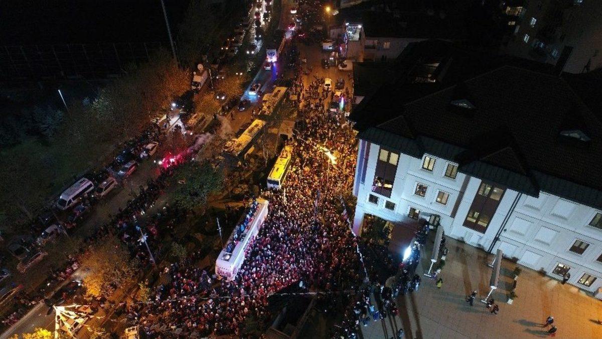 Referandum resin olmayan sonuçlarının “Evet” çıkmasının ardından ellerinde Türk bayraklarıyla AK Parti İstanbul İl Başkanlığı’nın önüne gelen binlerce vatandaşın oluşturduğu coşkulu kalabalık havadan drone ile görüntülendi.Yeni anayasa sisteminin halkoyuna sunulduğu referandum sonuçlarından “Evet” çıkmasının ardından binlerce vatandaşın Sütlüce’deki AK Parti İstanbul İl Başkanlığı önüne akın etti.AK Parti il binası önünde zaferi kutlayan coşkulu kalabalık havadan drone ile görüntülendi. Alana akın eden binlerce vatandaş ellerinde Türk Bayrakları ve Cumhurbaşkanı Recep Tayyip Erdoğan’ın posterleriyle seçim sonucunu kutladı. Kimi vatandaşlar da attıklarısloganlarla birlikte meşaleler yakarak alandaki kutlamalara destek verirken alandaki kutlamalar drone ile havadan görüntülendi.