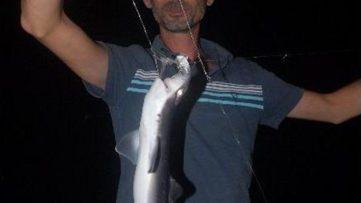 Zonguldak’ta lüfer için denize olta atan amatör balıkçıların oltasına üç saatte 12 yavru köpek balığı takıldı.Zonguldak’ta üç amatör balıkçı, akşam saatlerinde lüfer yakalamak için Uzunkum Plajı’na geldi. Lüfer için denize olta atan balıkçılar, gelen balıkların camgöz yavru köpek balığı olduğunu görünce şaşkınlık yaşadılar. Yaklaşık üç saat boyunca denize olta atan balıkçılar, art arda 12 yavru köpek balığı yakaladılar. Serdar Eyüpoğlu, “Yaklaşık iki saattir buradayız. Her oltamızı attığımızda gelen tek balık köpek balığı oldu. Bu tarihte bir ilk oldu. Yaşım 37, yaklaşık 20 senedir balıkçıyım, böyle bir şeyi ilk kez görüyorum. Oltayı atıyoruz, çekiyoruz köpek balığı çıkıyor. Bir tane de küçük bir mezgit balığı aldık. Bu kadar çok köpek balığının bu sularda olması biraz tuhaf. Biz lüfer için attık, iki akşam önce lüfer almıştım. Bu akşam şansımıza bunlar geldi. Yemek isteyen varsa verebiliriz” dedi.Balıkçılardan Selahattin Güzel ise, “Benim ilk defa başıma böyle bir şey geliyor. İlk defa oltayla köpek balığı yakalıyorum” diye konuştu.Amatör balıkçı Engin Yazıcı da yavru köpek balığını kolunun üzerine koyarak uzunluğunu ölçtü. Balıkların uzunluğunun 50 ila 80 santimetre olduğu gözlendi.