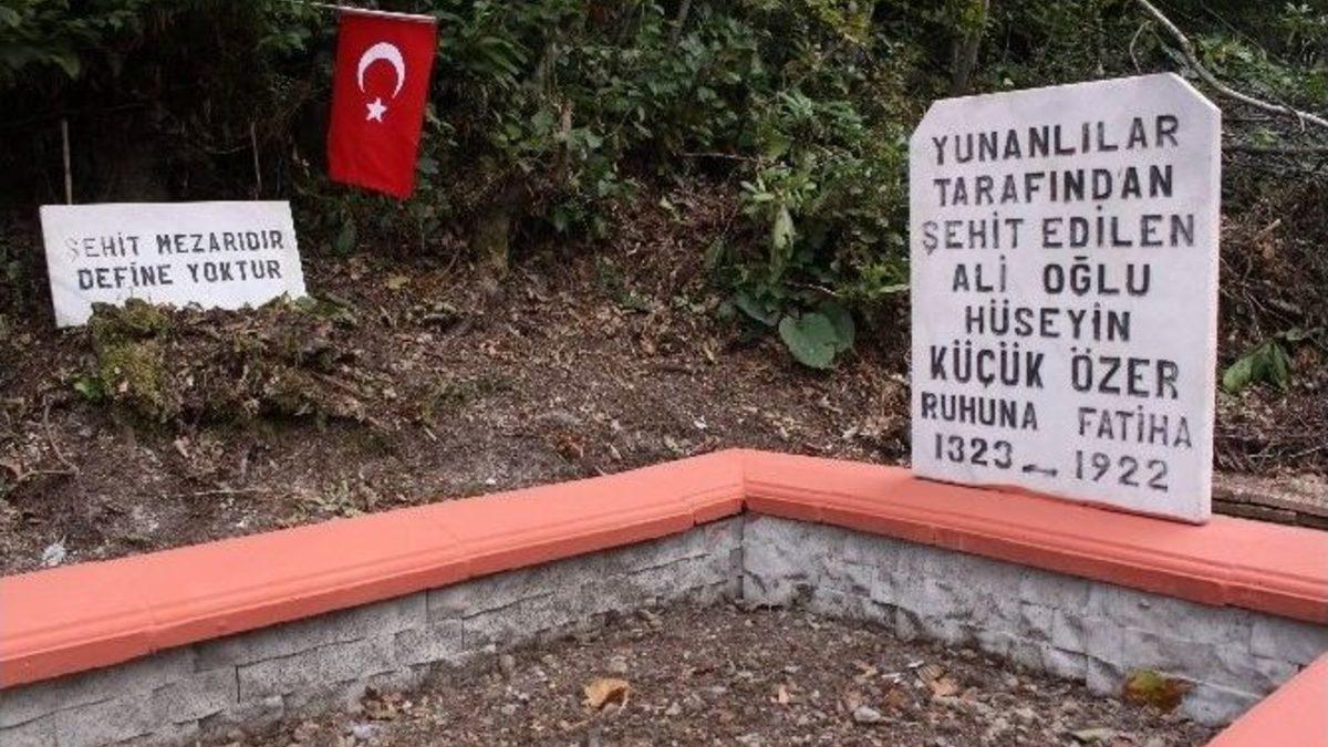 Kocaeli’nin Gölcük ilçesine bağlı Halıdere’de Yunanlılar tarafından 1922 yılında şehit edilen Hüseyin Küçük Özer’in mezarının defineciler tarafından talan edilmesi tepki gördü. Olaya isyan eden yeğen Ali Küçük Özer, çareyi mezar başına “Şehit mezarıdır define yoktur” yazısı yazmakta buldu.Kocaeli’nin Gölcük ilçesine bağlı Halıdere mahallesi Yukarı köyünde 1922 yılında Yunanlılar tarafından şehit edilen Hüseyin Küçük Özer’in mezarına definecileri uyarmak için yazılan yazı ’pes artık’ dedirtti. Daha önce defineciler tarafından 5-6 kez kazılarak harap edilen mezara dikilen "Şehit mezarıdır define yoktur" yazısı definecilerin kural dinlemezliğini bir kez daha göz önüne serdi.Yukarı köyünde 1922 yılında ailesi ile birlikte Yunan askerlerinden kaçarak ormana sığınmak isterken şehit edilen Hüseyin Küçük Özer, şehit edildiği yerde yakınları tarafından defnedildi. Yakınları, mezarın yerini korumaya alsa da, yerleşim yeri dışında ıssız bir yerde olan mezar, sık sık altın bulma bahanesiyle defineciler tarafından kazılmaya devam etti. Şehidin mezarını define bulmak ümidiyle sürekli kazan defineciler, mezarda derin çukur açarak şehidin kemiklerini etrafa saçtılar. Şehit amcasının mezarını düzelten ancak buna rağmen definecilerin mezarı sürekli kazarak harap etmesinden bıkan Ali Küçük Özer, çareyi “Şehit mezarıdır, define yoktur” yazısı yazdırarak buldu.Amcasının şehit edilişini anlatan Ali Küçük Özer, şöyle konuştu: “Yunan harbinde Yukarı köyü Yunanlılar basmış. Dedelerim, babaannem, amcalarım hepsi beraber yukarı çıkarak, o da atlarla, eşeklerle kaçıyor. Yolda amcam ceketini düşürüyor. Ceketini düşürünce dönüyor. Dedem de diyor ki, ‘dönme’. Amcam ‘Döneyim’ dedi. Dönünce de yunanlarla kafa kafaya geliyor. Yunan askeri onu vurarak 16 yaşında şehit ediyor. Şehit edildiği yer burası. Onlar buraya gömüyorlar, mezar yapıyorlar” dedi.Definecilerin bir şey bulma bahanesiyle şehit amcasının kemiklerini dahi çıkardığını söyleyen Ali Özer, sözlerini şöyle sürdürdü: “Biz de devamlı gelip gidiyoruz. Ondan sonra burası devamlı kazılıyor, defineciler tarafından. Kaç kere ikaz ettik, kaç kere mezar taşları yaptık. Dedik ki, ’Burada şehit yatıyor, define yoktur’ diye ama 5-6 kere açıldı burası. Mezarın içini oyuyorlar. Altın arıyorlar, bir şeyler arıyorlar. Kemikler dahi kalmamış. Çıkarmışlar, birkaç tanesini bulduk. Bulduklarımızı tekrar gömdük. Daha önce şehit yazısı falan yoktu. Buranın halkı, yörenin halkı herkes biliyor burayı. Yabancılar gelip gidiyordu. Bizimkilerden bunu yapan kimse yok yani. Bu yazıyı ben yazdım. 10 sene falan oldu. Devamlı kazılıyordu. Buradan gelen geçen diyor ki, amcanın mezarını gene kazmışlar. Gelip bakıyoruz ki mezar oyulmuş. Harap olmuş her şey. Mezarlıktan çıkmış. Dağ hayvanları gelip geçiyor. Bu sefer gelip toparlıyoruz. 6 ay, bir sene, iki yıl sonra aynı. O definecilerin bir hızı, zamanı var herhalde. Gelip açıp bir define arıyorlar.”Şehidin çıkarılan kemiklerini elleriyle tekrar mezara koyduklarını ifade eden şehit yakını Ali Özer, şunları söyledi: “Definecilerden bıktık, devamlı rahmetlinin mezarını oyup açıyorlar. Oyuyorlar içini hemen hemen bel boyunda açıyorlar. Mezarın içerisinde ne kemik kalmış, ne bir şey kalmış içeride. Biz kemikleri teker teker toplayıp içeri koyuyoruz. Mezarı kapatıyoruz. 6 ay sonra, bir sene sonra, iki yıl sonra gene açılıyor. Bu yazıyı yazdıktan sonra bayağı fark etti, etkisi oldu. Şimdi Gölcük Belediyemiz sağolsun böyle bir şey yaptı."Şehit mezarının durumunu gördüğünde durumu belediye yetkililerine ileterek düzenleme yapılması talebinde bulunan Halıdere Muhtarı İhsan Ataman ise şehit mezarında her yıl geleneksel hale getirilecek bir anma etkinliği yapmak için de girişimde bulunacaklarını söyledi.