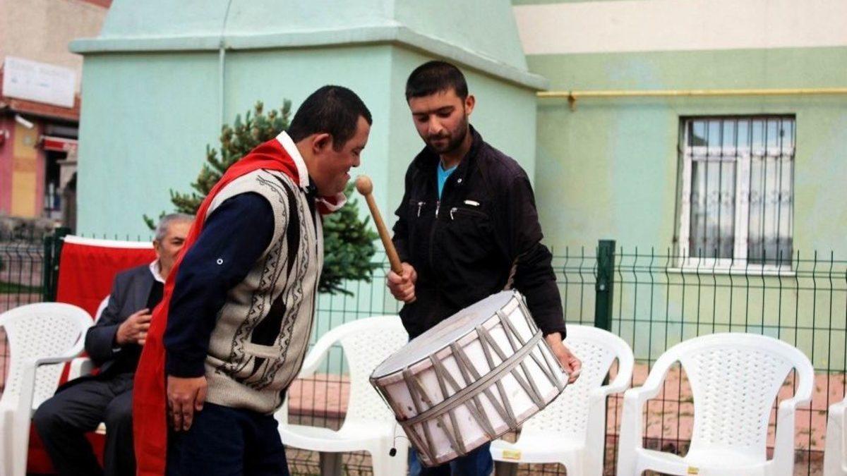Kayseri’de yaşayan 29 yaşındaki down sendromlu Nuri Özdemir’in askere gitme hayalini polisler gerçekleştirdi. Temsili askerlik uygulamasında 1 günlüğüne askere gidecek Nuri için, kına gecesi düzenlendi.Kayseri’de Gazi-Devlet Han çiftinin 4. çocuğu olan 29 yaşındaki down sendromlu Nuri Özdemir’in askere gitme hayalini Kayseri İl Emniyet Müdürlüğü Toplum Destekli Polislik Şube Müdürlüğü ekipleri gerçekleştirdi. Temsili askerlik uygulamasında, 1 günlüğüne askere gidecek olan Nuri Özdemir için mahallesinde kına gecesi düzenlendi. Duygu dolu anların yaşandığı kına gecesinde polis ağabeyleri ile beraber oynayan down sendromlu Nuri’nin mutluluğu gözlerinden okundu. Zaman zaman gözyaşlarını tutamayan Nuri Özdemir’i polisler teselli etmeye çalıştı.Oğlunun askere gidecek olmasından dolayı çok mutlu olduğunu kaydeden Baba Gazi Özdemir, Kayseri İl Emniyet Müdürlüğüne teşekkür etti. Oğlunun sürekli askere gitmek istediğini kaydeden baba Özdemir, oğluna sarılarak mutluluğunu paylaştı.Anne Devlet Han Özdemir ise “Nuri, askere gitmek istediğini devamlı söylüyordu. Bizi çok mutlu ettiler. Polislerimize çok teşekkür ederim. Nuri bana ‘Askerde teröristleri vuracağım’ diyor. Devamlı olarak bana ‘Beni askere gönder’ diyor. Çok şükür bugünleri de gördük” dedi.Kayseri İl Emniyet Müdürlüğü Toplum Destekli Polislik Şube Müdürlüğünden baş polis Yusuf Levent Atakan da, “Engelliler Haftası dolayısıyla sosyal sorumluluk projelerimiz kapsamında böyle gençlerimizi sevindirme adına faaliyetlerimizden bir tanesini şu anda yapıyoruz. Askerlik şubesi ile görüşerek down sendromlu kardeşimize bir günlüğüne de olsa mutluluk yaşatmak istedik. Yarın birliğine teslim edeceğiz. Şimdi de kına gecesi yapıyoruz. Kendisi de çok mutlu gözüküyor” şeklinde konuştu.Osmanlı Mahallesi polisi Mesut Eroğlu ise “En büyük hayali askere gitmek olan engelli kardeşimiz Nuri için bir program hazırladık. Nuri ile mahallede sürekli görüşüyorduk ve bize en büyük hayalinin askere gitmek olduğunu söylüyordu. Bizde askerlik şube başkanımızla görüştük ve bize yardımcı oldular. Türk Silahlı Kuvvetlerinin temsili askerlik uygulamasına Nuri kardeşimizi de dahil ettik” ifadelerini kullandı.Düzenlenen gece, down sendromlu Nuri Özdemir’e kına yakılması ile devam etti. Nuri’yi bir an olsun bile yalnız bırakmayan Kayseri İl Emniyet Müdürlüğü Toplum Destekli Polislik Şube Müdürlüğü ekipleri ise oyuna eşlik etti.
