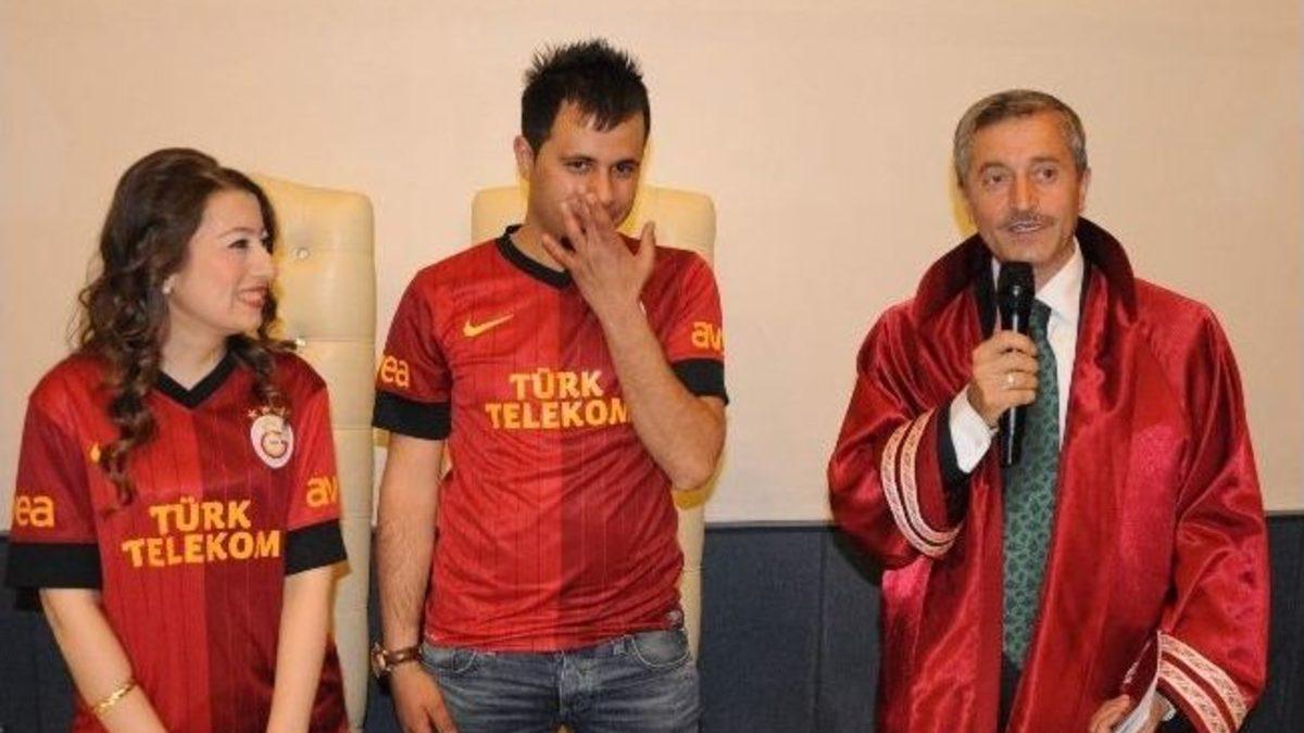 Fanatik cimbomlu çift, 04.04.2014 tarihinde gelinlik ve damatlık yerine Galatasaray forması giydi ve ‘1905 kere evet’ diyerek hayatlarını birleştirdi.Şahinbey Nikah Salonunda gerçekleştirilen fanatik Galatasaraylı Semih Kazıcı ve Bahar Saydam çiftinin nikahını Şahinbey Belediye Başkanı Mehmet Tahmazoğlu kıydı. Fanatik çiftin nikah töreninde ünlü sanatçı Mehmet Yakar da fanatik Galatasaraylı çifte ‘Antep’in Hamamları’ şarkısını söyleyerek jest yaptı. Şahinbey Belediye Başkanı Mehmet Tahmazoğlu ise genç çifte mutluluklar dileyerek, en ilginç nikahlardan birisini kıydığını söyledi. Nikahın sonrasında fanatik çiftlere bakır işlemeli fincan takımı hediye eden Tahmazoğlu “Bugüne kadar birçok nikah kıydım ama formalı nikah kıymadım. En ilginç kıydığım nikahlardan birisi ikisi de konuşamayan bir çiftin nikahını kıymıştım. Ondan sonra kıydığım en ilginç nikah bu oldu. Kızımız Bahar hanımla Semih bey Galatasaray forması ile nikah kıymak istediklerini bize beyan edince bizde seve seve kabul ettik ve geldik. Nikahlarını kıydık. Her ikisi de ‘1905 kere evet’ dediler. Bol çocuk ve bol şampiyonluklar diliyorum” dedi.Galatasaray’ı çok sevdiğini dile getiren İzmirli gelin Bahar Saydam iki aşkı bir arada yaşadıklarını belirterek, “Ben takımımı çok seviyorum benim için Galtasaray’ın yeri çok başka. İki aşk bir arada olsun dedik. Öyle bir şey düşündük. Katılan herkese çok teşekkür ediyorum” şeklinde konuştu.Fanatik damat Semih Kıyıcı ise 04.04.2014 tarihini akılda kalıcı olması ve özel bir gün olması nedeni ile tercih ettiklerini kaydederek, “Galatasaray’ı çok seviyoruz gerçekten. Özel bir gün olsun istedik. 04.04.2014 tarihi bu yüzden seçtik. Erkekler malum bu tür önemli günleri çabuk unutuyor. Özel bir tarih olursa daha akılda kalıcı olur dedik. Aslında biz 5. Ayın 19’unda yapacaktık. 19 Mayıs resmi tatil olduğu için o nedenle olmadı. O nedenle biz de bugünü seçtik” ifadelerini kullandı.Çiftin evlilik cüzdanını sanatçı Mehmet Yakar’ın elinden almasının ardından küçük bir çocuk da ‘Cimbom’a yuh’ diyerek nikaha renk kattı. Fanatik çift daha sonra hatıra fotoğrafı çektirerek tebrikleri kabul etti.