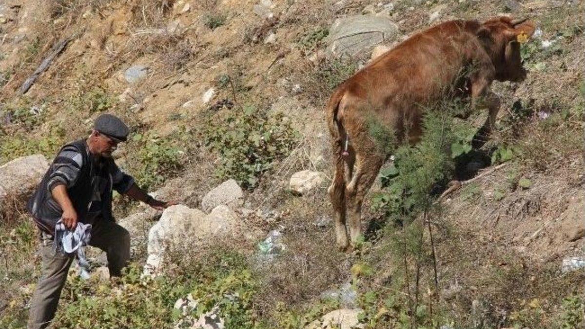 Bursa'da pazarda satılan kurbanlık düve, araçtan indirilirken sahibinin bir anlık dalgınlığından faydalanarak kaçtı. Dere yatağına inen kurbanlık hayvan, uyuşturucu iğne ile sakinleştirildi.Kurban Bayramı’nın ilk gününde Bursa'da bilindik manzaralar bir kez daha yaşandı. Kurban kesimi sırasında yaralanan acemi kasaplar hastaneleri doldurdu. Kimi vatandaşlar kurban kesim alanlarında hijyenik şartlar altında kesim yaparken, kimileri de yasak olan bölgelerde kurbanlarını kesti.Bayramın ilk gününde sahiplerinin elinden kaçan kurbanlıklar da vatandaşları mağdur etti. Yıldırım ilçesindeki İsabey Kurban Pazarı’nda satılan 2,5 yaşındaki düve, sahibinin elinden kaçmayı başardı. Düve sahipleri, kurbanlık hayvanın peşinden koşarak yakalamaya çalıştı. Ancak vatandaşlar başarılı olamayınca Bursa Büyükşehir Belediyesi'nin Alo 153 hattından yardım istedi. Belediye de hemen ekipleri sevk etti. Kurbanlık hayvan son olarak kurban pazarının yakınındaki dere yatağına indi. Burada bekletilen düveye, olay yerine gelen Yıldırım Belediyesi Veteriner İşleri Müdürlüğü ekipleri müdahale etti. Ekipler, uyuşturuculu iğneyle 700 kiloluk düveyi bayılttı. İğneler sebebiyle sersemleşen kurbanlık hayvan, dere yatağını tırmanarak bir evin bahçesine girdi. Kısa süreli kovalamacının ardından kurbanlık düve yakalanarak sahiplerine teslim edildi.Hayvanı sattıktan sonra kaçıran Mustafa Göçmen, "Bizi çok uğraştırdı. Sabahtan beri kurbanın peşindeyiz. En sonunda yakalamayı başardık" dedi.