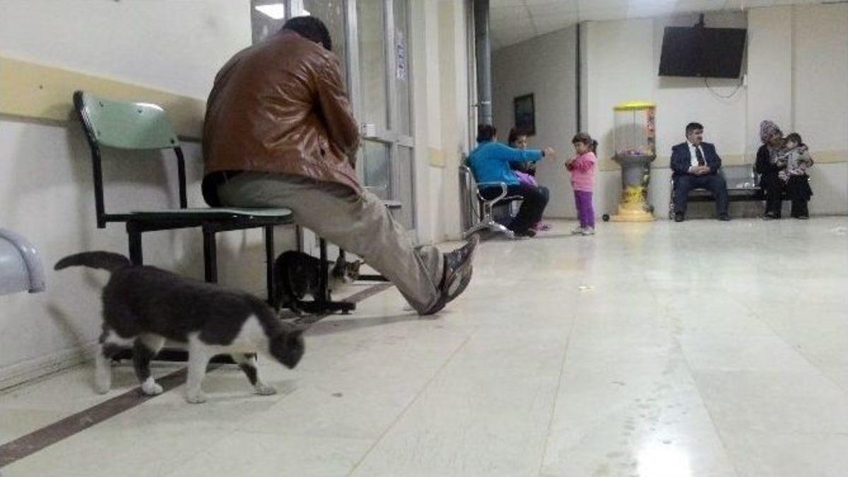 İzmir’de soğuk havadan etkilenen kediler, Ege Üniversitesi Hastanesi Çocuk Acil Servisine girdi.Gece saatlerinde etkili olan soğuk havadan etkilenen kediler, Ege Üniversitesi Çocuk Acil bölümüne sığındı. Kediler burada yere dökülen sütü içip çocukların düşürdüğü bisküvi kırıntılarını yedi. Bazı çocuklarsa kedilerle oynadı. Kedilerin o anları ise objektiflere yansıdı.