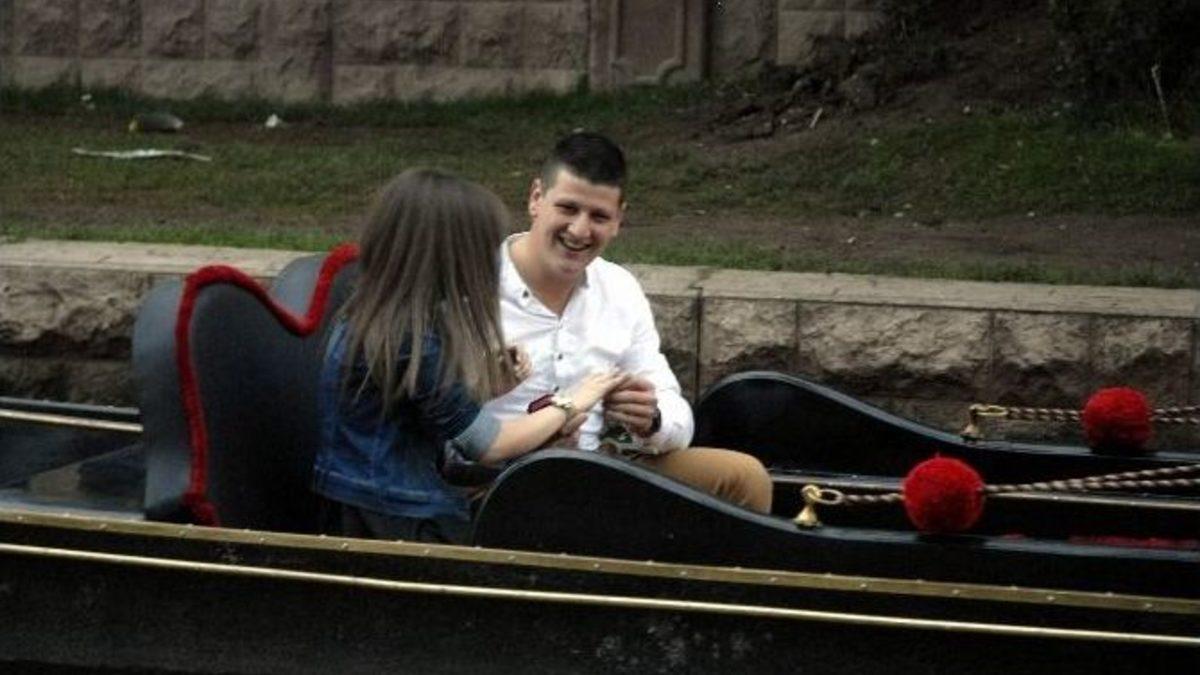 Eskişehir’de askerden izne gelen genç, kız arkadaşına doğum gününde ilginç bir evlenme teklifi yaptı.Şırnak’ta vatani görevini yapan ve teskere almasına 4 ay kala memleketi Eskişehir’e izne gelen 24 yaşındaki Buğra Uslu, yakın arkadaşları ile birlikte kız arkadaşı 22 yaşındaki Emine Balcı’ya gondol üzerinde evlenme teklifi planı yaptı. İki sevgili, Porsuk çayı üzerinde hizmet veren Eskişehir Büyükşehir Belediyesine ait bir gondolla yaptıkları gezinti esnasında, köprü üzerinde Buğra Uslu’nun arkadaşları tarafından ‘Benimle evlenir misin?’ yazılı afiş açıldı ve meş’aleler yakıldı. Bu durumu gören Emine Balcı neye uğradığını şaşırdı. Bir anda yapılan sürpriz karşısında şaşkınlığını gizleyemeyen Balcı, erkek arkadaşının evlenme teklifine ‘Evet’ dedi. Yapılan sürpriz teklifi izleyen çevredeki vatandaşlar ise alkışlarla çiftin dünya girmesinin ilk adımını kutladı.“5 YIL BAŞKALARINI EVLENDİRDİM, SIRA BİZE GELDİ”Yaptığı sürpriz teklifle ilgili konuşan Buğra Uslu, kız arkadaşının doğum gününde evlilik sürprizi yapmak istediğini söyledi. Uslu, vatani görevini yapmadan önce gondol kaptanı olduğunu belirterek, “5 yıl kendim bu iş içinde çalıştım, 5 yıl başkalarını evlendirdim baktım sıra bize geldi değişik bir sistem yapalım dedim. Arkadaşlarımızın da varlığı ile sağ olsunlar hepsinin sayesinde yaptık bu işi bakalım Allah tamamını erdirsin inşallah” dedi.“GERÇEKTEN ÇOK MUTLUYUM ŞUAN HEYECANDAN TİTRİYORUM”Doğum gününde sürpriz evlenme teklifi alan Emine Balcı ise, yapılan sürpriz karşısında duygularını söyle anlattı:“Doğum günüm bugün ve sağolsun sevgilim bana evlenme teklif etti. Çok mutluyum, gerçekten çok mutluyum şuan heyecandan titriyorum. Ama çok mutluyuz Allah tamamını erdirsin, bir yastıkta kocatsın bizi.”