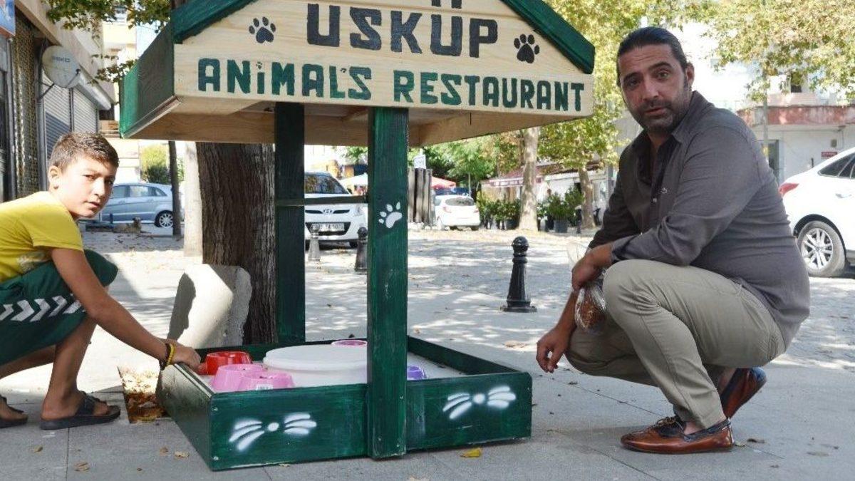 Silivri’nin Selimpaşa Mahallesi’nde restoran işletmeciliği yapan Selçuk Kıroğlu, iş yerinin yanına sokak hayvanları için mini restoran açtı.Silivri’nin Selimpaşa Mahallesi’nde restoran işletmeciliği yapan Selçuk Kıroğlu, sokak hayvanlarının rahatça beslenmelerini sağlamak için ‘Üsküp Animal’s Restaurant’ ismini verdiği mini restoran açtı. İş yerinin yanında kurduğu küçük kulübeye günün çeşitli saatlerinde mama bırakan Kıroğlu, sokak hayvanlarına sahip çıktı. Kıroğlu’nun cadde üzerine sokak hayvanları için kurduğu mini restoran vatandaşlardan yoğun ilgi gördü.Yaptığı açıklamada hayvanları çok sevdiğini belirten Selçuk Kıroğlu, “Hayvanlar bizim içimizde. Ağaçlar nasılsa, insanlar nasılsa hayvanlarla birlikte yaşamamız gerektiğini düşünüyorum. Onlara böyle bir kolaylık sağlamak istedim. Restoran işlettiğimden dolayı etrafımızda sürekli sokak hayvanları oluyor. Onlar da aç kalıyor, barınacak yere ihtiyaç duyuyorlar. Onlar da bir can sonuçta, bu şekilde bir çözüm üretmeye çalıştım. Çevreden aldığım tepkiler çok güzel, böyle hem eğleniyoruz hem de bir şeyler yapmanın gururunu yaşıyorum. Çok keyifli bir şey, doğadaki hayvanlara bu şekilde yardımcı olabilmek çok mutlu etti beni. Mutluyum, onlar yemeklerini yiyorlar, ben de bir şeylere sebep oldum. Aslında herkese bir örnek teşkil etmeli bence, çünkü sokak hayvanları, minik dostlarımız sıkıntılar yaşayabiliyorlar. Sonuçta birçok şeye muhtaçlar” dedi.