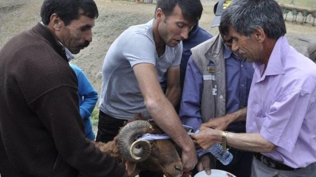 60 yıldır su sıkıntısı çeken Kars’a bağlı Eşmeçayır köyünün muhtarı, susuzluk sorunu çözüme kavuşmadığı için muhtarlık mührünü, yetkilerini ve kravatını, koyun sürüsü arasındaki bir koça devretti. Köyde yaşayan vatandaşlar su probleminin çözülmesi için yardım istedi.Kars’a 110 kilometre uzaklıkta bulunan, 2 bin nüfuslu Eşmeçayır köyünde yaşayan vatandaşlar yaşanan su sıkıntısı nedeniyle suyun büyük bir kısmını marketlerden temin ediyor. Köye, 2001 yılında bağlanan bir şebeke suyu yetmediği için köylüler çareyi arabalar ile köye 3 kilometre uzaklıkta bulunan bir kaynaktan bidonlarla su getirmekte buldu. Eşmeçayır Köyü Muhtarı Hacı Çelik, yaşanan su sıkıntısına dayanamayarak, kravatını, muhtarlık mührünü ve yetkilerini köyde bulunan bir koça devretti. Muhtarın, kravatını koçun boynuna asması ve muhtarlık müdürünü vermesi ilginç görüntüler oluşturdu. Çelik, köyüne su gelinceye kadar kravatı takmayacağını ve devletten yardım istediğini belirtti.“MUHTARLIK KOÇ BEYEFENDİYE KALSIN”350 haneli köye hizmet beklediklerini ifade eden Eşmeçayır Köyü Muhtarı Hacı Çelik, “60 yıldan beridir susuzuz, 2001 yılında bir şebeke suyu verildi. Verilen o şebeke suyunu sabah 5’ten akşam 5’e kadar açık tutuyoruz ancak köyün bir kısmına yetecek kadar su sağlayabiliyoruz. Yetkililerin bu durumu düzeltmelerini istiyoruz bize yardım esinler. Biz arabalar ile su ihtiyacımızı görmeye gittiğimiz zaman bütün mazotumuzu yolda harcıyoruz, çok mağdur durumdayız . Getirdiğimiz suları, güneş enerjisi ile suyu ısıtan panellere döküyoruz ve böyle yıkanabiliyoruz. Ben ayda 900 TL maaş alıyorum ama bu su sıkıntısı yüzünden 2 bin TL zarara giriyorum. Su gelmeyene kadar bende kravatımı koça devrediyorum. Artık muhtarın mühürde bu koçundur. Su gelene kadar benim muhtarlığım ‘koç beyefendiye’ kalsın” dedi."MARKETTEN İÇME SUYU ALIYORUZ"Eşmeçayır köyünün sorunları arasında en önemlisinin su sıkıntısı olduğunu belirten köyde yaşayan vatandaşlar, “Bizim için en önemli sorunların ikincisi köyün yollarıdır. Biz bidonlar ile hayvanlarımıza su getiriyoruz 24 saat boyunca. Hayvanlarımız buradan akan pis suyu içiyorlar. Bizim suçumuz nedir? Biz marketlerden içme suyu alıyoruz. Devlet neden bize bakmıyor, sorunlarımızı çözmüyor” diye konuştu.Öte yandan, Eşmeçayır köyünde 2013 yılında köy heyetinin gösterdiği bölgede sondaj çalışması yapıldığı ancak bu bölgede yeterli su bulunmayınca 2015 yılında köy heyetinin başka bir yer belirlediği ifade edildi. Burada yapılan sondaj çalışmalarında su bulunduğu ve 2015 yatırım programına alındığı, yılsonuna kadar da köyün su sorununun giderileceği belirtildi.