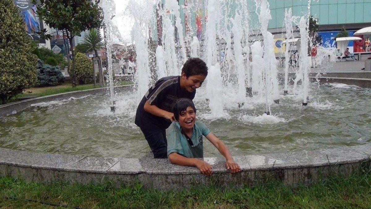İstanbul Mecidiyeköy’de sıcak havadan bunalan Suriyeli çocuklar, tehlikeye aldırış etmeden bir alışveriş merkezinin önündeki süs havuzuna atlayarak serinledi. Çocuklarla kendilerine engel olmaya çalışan özel güvenlik görevlilerin adeta köşe kapmaca oynadığı anlar ise kameralarca kaydedildi.İstanbul’da günlerdir etkisini gösteren sıcak havadan bunalan Suriyeli çocuklar serinlemenin yine tehlikeli yolunu seçti. Mecidiyeköy’de bir alışveriş merkezi önünde bulunan süs havuzuna atlayan çocuklar bir süre yüzdükten sonra alışveriş merkezinin güvenlik görevlisi tarafından uzaklaştırdı. Güvenlik görevlisinden kaçan çocuklar kendilerini hızla yola atarak az kalsın bir faciaya neden olacaktı.Güvenlik görevlisinin gitmesinin ardından çocuklar tekrar süs havuzuna gelerek eğlenmeye devam etti. Çevredeki vatandaşların uyarılarına aldırış etmeyen çocuklar birbirlerini zorla süs havuzuna itti. Bir temizlik görevlisi çevredeki vatandaşların çocukları uzaklaştırmasını söylemesi üzerine “Benim işim değil” diye cevap vermesi dikkat çekerken bir başka vatandaş ise “Tehlikeli değil mi?” sorusuna “Bunlar için fark etmez” diyerek kayıtsız kaldı.Güvenlik görevlisinin tekrar süs havuzuna gelmesinin ardından çocuklar havuzdan çıkarak hızla uzaklaştı.