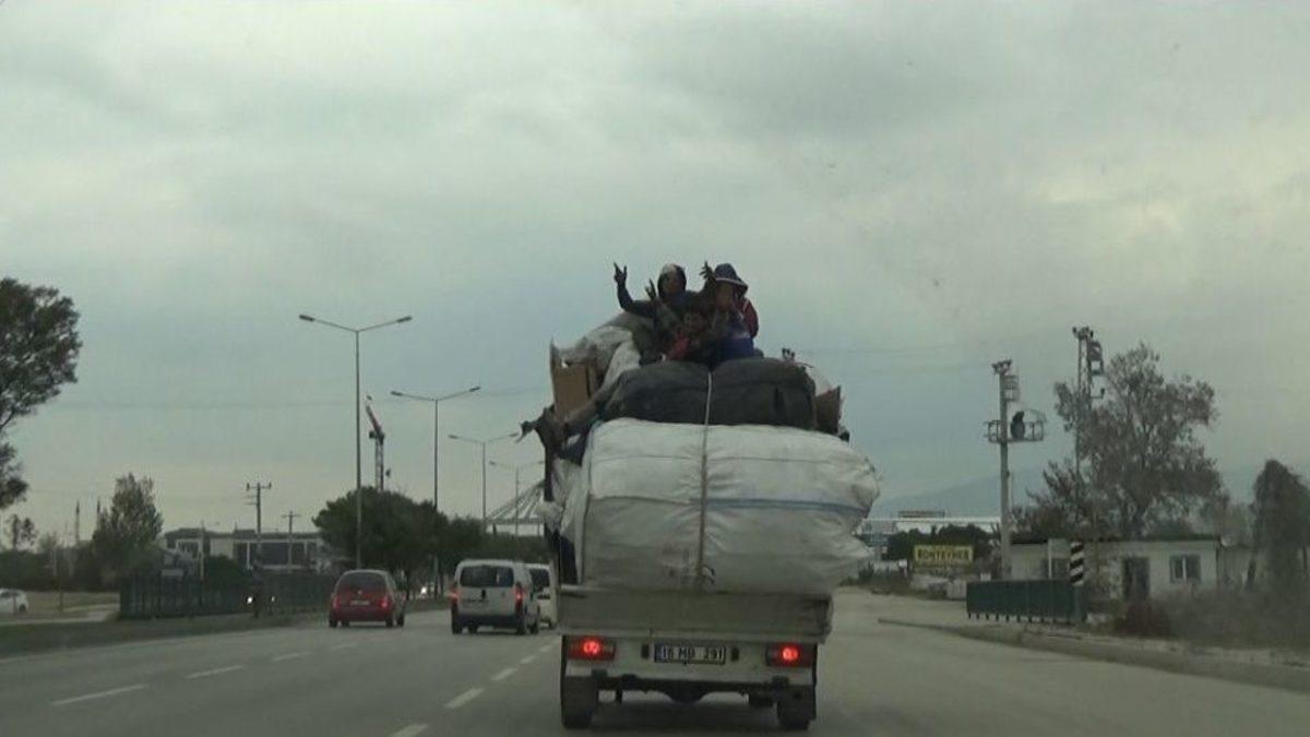 Bursa’da seyir halindeki eşya yüklü kamyonetin üzerinde oturan ve kara yolunda tehlikeye davetiye çıkaran 4 işçi kameralara yansıdı.Bursa İzmir yolu üzerinde bir kamyonetin üzerinde yolculuk yapan 4 işçi yürekleri ağza getirdi. İzmir yolundan Bursa istikametine doğru seyreden 16 MB plakalı kamyonete yüklenen eşyalar üzerinde yolculuk yapan 4 işçi canlarını hiçe sayarak yolculuklarını gerçekleştirdi. Kamera tarafından kayıt altına alındığı gören işçiler objektife el sallamayı da ihmal etmedi.Kamyonete aşırı eşya yüklenerek trafikte ilerlemesi diğer araçları da tehlikeye attığı gözlemlendi.
