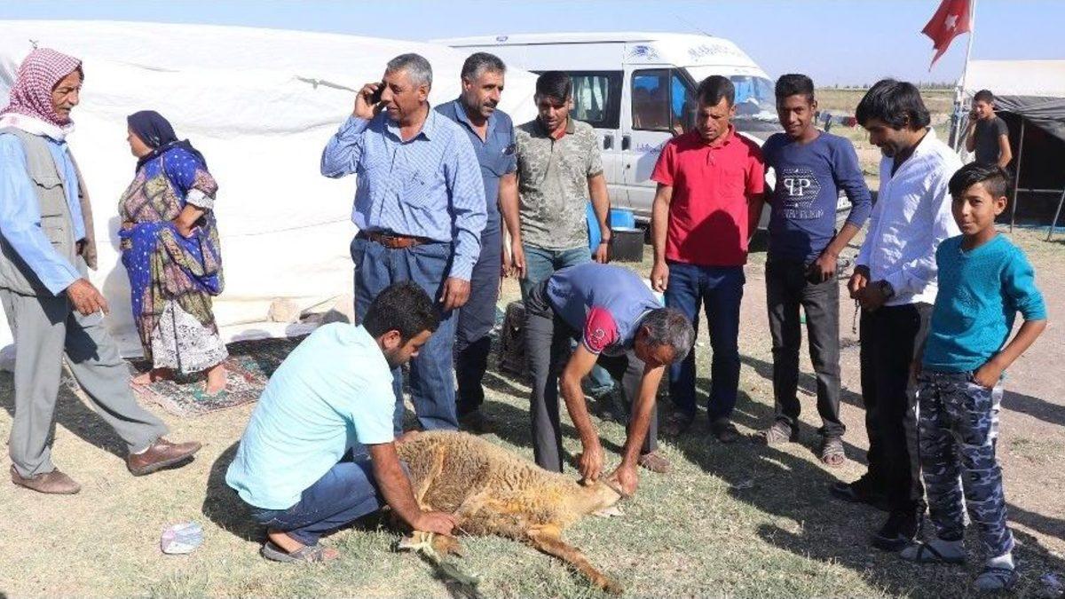 Nüfusunun yüzde 80’inin tarım ve hayvancılıktan geçimin sağladığı ve her yıl 15 bine yakın tarım işçisinin istihdam ettiği Aksaray’da tarlalarda çalışan Şanlıurfalı tarım işçileri kaldıkları çadır kentte kurbanlarını kesti.Aratol bölgesinde yaşayan yaklaşık bin 500 kişilik tarım işçilerinin bir kısmı da bayram olmasına rağmen tarlalarda çalışmalarını sürdürdü. Çadırlarının önlerinde tekbir eşliğinde kurbanlarını kesen tarım işçileri, kurban kesiminin ardından yeniden tarım arazilerindeki çalışmalarına döndü. Genç yaşlı, çoluk çocuk demeden çadırlarda yaşamlarını sürdüren tarım işçileri, kurban kesiminin ardından birbirleri ile bayramlaşırken, Tüm İslam Alemi’nin de bayramını kutladı.Şanlıurfa’dan Aksaray’a çalışmak için geldiklerini belirten Şanlıurfalı tarım işçisi İsmail Küçük (48), “Şanlıurfa’dan geldik, tarım işçisiyiz. Burada 6-7 ay kalıyoruz. 2 bayramı da burada geçiriyoruz. Kurbanlarımızı burada kesiyoruz. Kurbanlarımızı kestikten sonra tarla işimize devam edeceğiz. 11’inci aya kadar işe burada devam edeceğiz” dedi.Şanlıurfalı tarım işçisi Halil Çifçili (41), “Şanlıurfa’dan geldik Aksaray’a. Aksaray’da çadırlarda kalıyoruz işte, mevsimlik işçiyiz. Kurban Bayramımızı kendi çadırlarımızda kutluyoruz. Sabah işe gidip akşam geliyoruz. Bütün İslam Alemi’nin bayramı mübarek olsun. Elhamdülillah, çok şükür” diye konuştu.Bir diğer tarım işçisi İsmail Demir (53) ise, “Çadırımız budur görüyorsunuz. Halimiz böyle. Çocuklarımızla burada bayramı geçiriyoruz. Yevmiyemiz 30 TL’ye geliyor. Mecbur kaldığımız için buna razıyız. Herkes bunu biliyor” dedi.“Tarım işçileri olmazsa tarım olmaz”Ziraat Odası Başkanı Emin Koçak ise “Tarım işçileri olmazsa biz tarım yapamayız. Köyümüze Urfa’dan gelen yaklaşık bin 500 ile 2 bin civarı şu anda tarım işçimiz var. Bugün bayramın 1’inci günü. O kardeşlerimizde dini vecibelerini yerine getirdiler. Birçok kardeşimiz kurbanını kesti. Şu anda bayramın 1’inci günü. Biz de hem köy muhtarı olarak, ziraat odası başkanı olarak, köy halkı olarak elimizden geldiği kadar yardımcı olmaya çalıştık” diye konuştu.