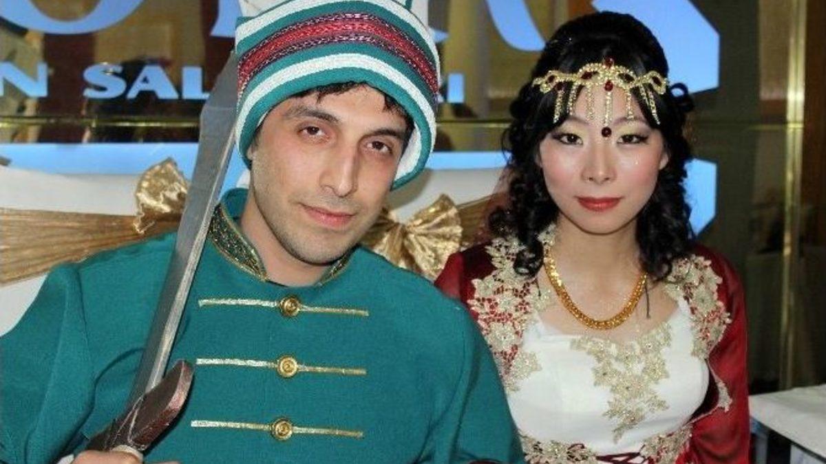 Japonya’da yaşayan ve müşterisine aşık olan Kahramanmaraşlı gencin düğün töreni, dillere destan görüntülere sahne oldu. Damatlık yerine yeniçeri kıyafeti giyen Muhammet Ali Güney, gelinlik yerine Bindallı kıyafeti giyen Japon Kaori (Kevser) Hasegawa’nın düğün töreninde, yaş pastanın yerini ünlü Maraş Dondurması aldı.Kahramanmaraş’tan yıllar önce Japonya’nın başkenti Tokyo’ya çalışmaya giden ve işyeri açan Muhammet Ali Güney, müşterisi Kaori Hasegawa’ya aşık oldu. Uzun süren arkadaşlıkları sonrası 5 yıl önce evlenme kararı alan Muhammet Ali Güney ile Kaori Hasegawa, Kahramanmaraş’ın düşman işgalinden kurtuluşunun 96. yıl dönümünü fırsat bilerek hem Türk hem Japon kültürüne uygun düğün töreni düzenlediler.Hacı-Hanım Güney çiftinin oğlu ile Miyoji-Hiroko Hasegawa’nın kızlarının düğün töreni, Japon Samuraylarının davetlileri karşılamasıyla başladı. Mehter Marşı’yla salona giren gelin ve damat, ilk danslarıyla davetlilerden büyük alkış aldı.Davetlilerin şaşkına döndüğü düğün töreninde tek tek misafirlerle ilgilenen damat Muhammet Ali Güney’i herkes tebrik etti.Davul zurna eşliğinde halayların çekildiği düğünde, Japon misafirlerin pistte sergilediği figürler davetliler tarafından beğeniyle izlendi.Çekilen halaylar ve oyunlar sonrası sıra düğün pastasına geldi. Düğün pastası beklenirken damat, misafirlerine bir sürpriz daha yaptı. Pasta yerine kesilmek üzere Maraş Dondurması geldi. Osmanlı kılıcıyla dondurmayı kesen çift, birbirlerine ikram etmeyi de unutmadılar.Samurayların halay çektiği düğün töreninde konuşan damat Muhammet Ali Güney, “Eşim Tokyo’da bizim dükkana gelen sürekli bir müşteriydi. Önce arkadaş olduk sonra daha da yakınlaştık. 5 yıl önce evlenme kararı aldık. Madem dedik Türkiye’de düğün yapıyoruz, özellikle eşim kültürümüze uygun olmasını istedi. Biz de tamam dedik ben de yeniçeri kıyafeti giymeye karar verdim” dedi.Müslüman olan ve Kevser ismini alan Kaori Hasegawa ise, kocasının tercümanlığında çok mutlu ve heyecanlı olduğunu söyledi.