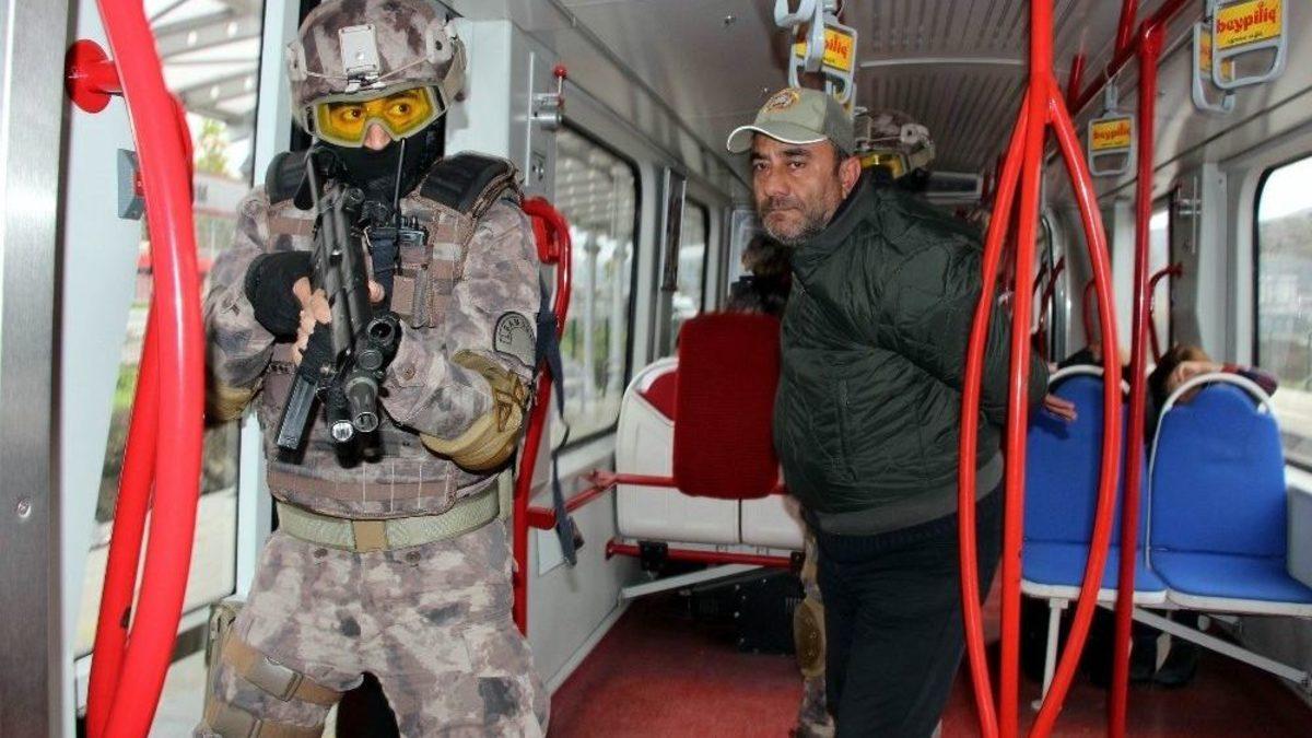 Samsun’da İl Emniyet Müdürlüğü Özel Harekat Şube Müdürlüğünün tramvayda gerçekleştirdiği “Rehine kurtarma tatbikatı” gerçeği aratmadı. Tatbikat esnasında yaşanan görüntüler nefes kesti.Samsun İl Emniyet Müdürlüğü Özel Harekat Şube Müdürlüğüne bağlı ekipler, şehirde en çok kullanılan toplu taşıma aracı olan hafif raylı sitemde rehine kurtarma tatbikatı gerçekleştirdi. Muhtemel bir rehine alma durumunda yaşanabilecek olayları esas alan özel harekatçılar, nefes kesen bir operasyon ile tatbikatı başarılı bir şekilde gerçekleştirdiler.Rehine kurtarma operasyonu ilk olarak hafif raylı sistem aracının teröristler tarafından kaçırılmasının anonsu verildikten sonra başladı. Teröristlerin yolcuları rehin aldığı tramvayın kontrollü bir yerde elektrik kesildi. Olay yerine çok sayıda özel harekat, müzakereci polis, bomba imha uzmanı, keskin nişancılar ve çok sayıda polis ekibi sevk edildi. Teröristlerden biri silahla rehin aldığı yolcuyla tramvayın kapısına gelerek, kaçmak için araba istedi. İsteği yerine getirilmeyen terörist, rehineyi silahla yaralayarak dışarı attı. Polis ekipleri çelik zırhlar ile tramvaya yaklaşarak yaralı yolcuyu olay bölgesinden uzaklaştırdı. Terörist, istekleri yerine getirilmediği takdirde bütün rehineleri öldüreceğini ekiplere bildirdi. Bu sırada özel harekat polisleri, tramvayın etrafını çevirdi. Teröristlerin dikkatini dağıtan müzakereci polisin de yardımıyla tramvayın arkasını bomba ile patlatan özel harekatçılar, arkadan tramvaya girerek teröristleri etkisiz hale getirdi.“Yaptıklarımdan pişman değilim, aklım hala yapamadıklarımda”Teröristleri etkisiz hale getiren özel harekatçılar, öncelikle teröristleri tramvaydan dışarı çıkarttı. Tramvaydan dışarıya çıkartılan teröristler, “Yaptıklarımdan pişman değilim, aklım hala yapamadıklarımda” diyerek bağırdı. Teröristlerin uzaklaştırılmasının ardından rehin alınan yolcular tek tek üstleri aranarak tahliye edildi. Olası bir bomba düzeneğine karşın rehinelerle birlikte tramvayın içi arandı. Polis ekipleri, tramvayın arkasında şüpheli bir çanta gördü. Şüpheli çantayı bağlanan iple birlikte uzağa çeken bomba imha uzmanları, fünye ile çantayı patlattı. Rehine kurtarma tatbikatı, hiçbir aksilik yaşanmadan başarıyla tamamlandı.Tatbikatın ardından açıklamalarda bulunan Samsun İl Emniyet Müdürü Vedat Yavuz, “Özel Harekat Şube Müdürlüğümüz, ilimizde olsun kırsalımızda olsun, muhtemel olaylara karşısında eğitimlerini devamlı sürdürüyor. Bu kapsamda rutin eğitimlerin dışında nokta operasyonlara yönelik eğitimleri de aralıksız olarak sürdürüyoruz. İlimizde ulaşımın can damarı olan hafif raylı sistemde meydana gelebilecek olası bir rehine alma krizindeki hareket kabiliyetini geliştirmek amacıyla böyle bir operasyonel çalışma icra ettik. İl Emniyet Müdürlüğü olarak tüm birimlerimizle birlikte 7/24 göreve hazırız. Özellikle Özel Harekat Şube Müdürlüğümüz, ilimizin her yerinde her operasyonda görev yapabilecek kapasiteye sahip. Tatbikata 60’ı özel harekat olmak üzere bütün birimlerden çok sayıda polisimiz katıldı. Arkadaşlarımıza bu başarı tatbikat teşekkür ediyorum” dedi.Tatbikat yaklaşık 1 saat kadar sürdü. Tatbikat gereği 3 terörist etkisiz hale getirilirken, 15 rehine de kurtarıldı.