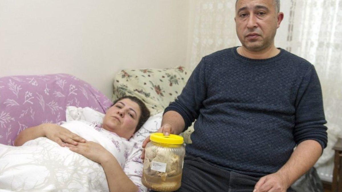 Kist olduğu sanılarak ameliyata alınan kadının karnından, 3 yıl önce sezaryen ile yaptığı doğumda unutulan bir kavanoz gazlı bez çıktı.Başkent’te özel bir hastanede 3 yıl önce sezaryen ile doğum yapan 38 yaşındaki Sibel Kol, karnında unutulan gazlı bezle yaşadı. Ankara’da yaşayan Sibel Kol, yaklaşık 3 yıl önce ikinci çocuğunun doğumunu yapmak üzere özel bir hastaneye yattı. Sezaryen yöntemiyle Aysima adı verilen bir kız çocuğu doğuran Kol, yaşadığı acılar nedeniyle gittiği doktorunun, ’ağrının normal olduğunu’ söyleyip evine gönderdi. Rahatsızlıktan kurtulmak için çare arayan Kol’un ağrısına teşhis konulamadı. Yaklaşık 3 yıl boyunca ağrıları daha da artan ve durumu kötüleşen Kol, başka bir hastaneye gittiğinde büyük bir şok yaşadı. Çekilen MR sonucu kist olduğu belirtilen kadının hemen ameliyat olmasına karar verildi. Yapılan operasyonda ise Kol’un, doğum sırasında unutulduğu iddia edilen bir kavanoz dolusu gazlı bez çıktı."Çocuğumu 2 gün sonra görebildim”Yaşadığı süreci anlatan Anne Sibel Kol, "8 ay boyunca kontrollere düzenli şekilde gittim. Hiç bir sıkıntı yoktu. 34 haftalıkken çocukta bazı sıkıntılar oluştu. Bu yüzden özel bir hastaneye geçtim. Orada çocuğumun çok iri olduğunu ve bu sebeple sezaryen ile doğum yapabileceğimi söylediler. Doktor ameliyat esnasında çok ilgiliydi. Fakat bir o kadarda dalga geçiyordu benimle. Bir süre sonra kendimce bir panik hissettim. İğne yaptılar ve uyudum. Doğumdan sonra çocuğumu yukarı çıkardılar. Çocuğumu 2 gün sonra görebildiğini” söyledi.“Psikolojim bozulması sonucu antidepresan ilaçlar kullanmaya başladım”Doğumdan sonra ağrılarının geçmediğini anlatan Kol, “Sürekli rahatsızlanıyordum. Daha sonrasında hiç düzelemedim. İlk bir hafta çocuğumu kucağıma alamadım. 1 hafta sonra tekrar aynı doktora gittim. Bana ’Bunlar olağan şeyler. Kilolu bir bebek doğumu yaptın. Kesin çok büyük. Ağrıların olacak. Yağlanman çok fazla onun için bunları yaşayacaksın" dedi. Ben daha sonra o hastaneye bir daha gitmek istemedim. Başka hastanelere gittim. Şuanda antidepresan ilacı kullanıyorum. Çocuğumu hala kucağıma alamıyorum" ifadelerini kullandı."Doktor bana "Kanser olabilirsin" dediEşiyle aralarında çok ciddi problemler yaşadığını belirten Kol, şunları kaydetti:"Onun beni görmesini ve bana dokunsun istemiyordum. Göbeğim hiç gitmedi. Dar şeyler giyemiyordum ve boşluklarım hep ağrıyordu. Çevremdekiler hep bana "Üşütüyorsun o yüzden oluyor ve kilolusun" diyorlardı. Hastanelere 3 yıl boyunca gitmedim değil, gittim ama sonuç bulamadım. Son gittiğim hastanede doktorum bana "Kanser olabilirsin" dedi.”Çocukları ile vedalaştıYaşananlar karşısında doktorlara güveninin kalmadığını söyleyen Kol, “Çocuklarımla vedalaşarak ameliyata girdim. Daha sonra farklı bir şeyin olduğunu öğrenince daha büyük yıkım yaşadım. Şuan çok kötüyüm. Kime güveneceğim ben. Doktorlara güvenmeyeceğiz de kime güveneceğiz. Vücudumda 2 tane bizim bildiğimiz gazlı bez çıktı. Vücudumu komple iltihap sarmış. Şuan hala onlarla savaşıyorum. Yaralarım iyileşmiyor. Ameliyatı gerçekleştiren doktorum bana sezaryen da bu bezlerin kaldığını söyledi. Zaten başka ameliyat geçirmedim. Hayatımda 2 kez ameliyat oldum. Birincisi sezaryen birde bu son gerçekleşen ameliyat" diye konuştu."3 yıl önce ben ölmüş olsaydım çocuklarım ne yapardı"Bir otobüse bindiğinde insanların kendisine hamile gibi davrandığını söyleyen anne Kol, "Çünkü karnım çok büyüktü. İnsanlar benimle dalga geçiyordu. "Sezaryen ile ameliyat oldun 2 yıl geçti hala hastasın" diyorlardı. Beyin olarak da çöktüm. Düşünün normal vücudunuz var ama 9 aylık hamile karnınız var. Eşim bir şey demiyordu ama ben ona karşı kendimi kötü hissediyordum. 3 yaşında çocuğum var ve ben onu kucağıma alamıyordum. İlgi gösteremiyordum ve aşırı sinir oluştu. İnsanlara güvenim kalmadı. Kendimi ot gibi hissediyorum. Hep bir şey var içimde. Bana bir şey mi olacak? Hep bunu düşünüyorum. Geceleri uyuyamıyorum. 3 yıl önce ben ölmüş olsaydım çocuklarım ne yapardı. Hep bunları düşünüyorum" şeklinde konuştu."Eşim çocuğunu kucağına alamıyor"Doğum gerçekleştikten sonra eski sağlığına eşinin bir daha kavuşamadığını ifade eden baba Erhan Kol, "Hastanenin doğum ünitesi tam yapılmadığı için bir arkadaşın tavsiyesiyle özel bir hastaneye gittik. Orada eşimi kontrol ettiler. Çocuğun çok iri olduğunu ve normal doğum yapamayacağını söylediler. Bizde bunu kabul ettik ve eşim ertesi gün sezaryene alındı. Eşim sezaryen olduktan sonra bir türlü kendine gelemedi. Eşimi eve getirdikten sonra bir türlü toparlanamadı. Daha sonra tekrar hastaneye gittik. Doktorla görüştük. Doktor bize ilaçları verdi ve eşim o ilaçları düzenli olarak kullandı. Onun akabinde eşim yine düzelmedi. Eşim bir şeyler indirip kaldıramıyordu. Çocuğunu kucağına alamıyor. Bana karşı ilgisizdi ve etrafına soğuk davranıyordu. Ruhsal olarak bir çöküntü yaşıyordu" dedi."Doktor, "Belki bu kanser içerikli bir kist olabilir" dedi.Eşinin sağlığına kavuşması için farklı hastanelere de gittiklerini söyleyen Kol, "En son gittiğimiz hastanede eşimin karın bölgesinde vücuttan bağımsız 2 tane kist tespit edildi. Doktor "Ameliyat etmeden bunun ne olduğunu göremem" dedi. Bizde ameliyat olmayı kabul ettik. Ameliyattan önce bir hemşire "Acaba bunlar sizin sezaryen olduğunuz ameliyatta unutulan bir şey olabilir mi?" dediğinde, kafamızda kocaman bir soru işareti oluştu. Böyle bir şey olmasına ihtimal vermiyorduk. Bir tane unutulsa tamam da, 2 ayrı bölgede 2 tane kist var. Doktor farklı şeylerden de bahsetti. "Belki bu kanser içerikli bir ki