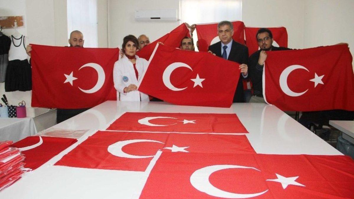 Yeni yılda Şanlıurfa’daki okullarda dalgalanacak olan Türk Bayraklarını Suriyeli mülteciler dikiyor. Büyük bir titizlikle dikilerek hazırlanan Türk Bayraklarından ilki, öğrenciler tarafından göndere çekildi.Şanlıurfa’daki okullarda dalgalanan Türk Bayraklarını Eyyübiye Halk Eğitim Merkezinde kurs gören Suriyeli mülteciler dikiyor. Daha önce okullar için bir çok proje gerçekleştiren Eyyübiye Halk Eğitim Merkezi, bu defa da birlik ve beraberliğin en büyük sembolü olan Türk Bayraklarının dikimini Suriyeli kursiyerler aracılığıyla yapıyor.Bayraklar büyük bir titizlikle dikiliyorMerkezdeki kursa katılan Suriyeliler, aldıkları eğitimle Türk Bayrakları büyük bir titizlikle dikiyor. Dikimi tamamlanan bayraklar yine Suriyeliler tarafından paketleniyor. Daha sonra ise bu bayraklar Şanlıurfa’daki okullara hediye ediliyor. Usta öğreticiler eşliğinde gönüllü olarak Türk bayraklarını diken Suriyeli kursiyerler bu sayede hem meslek ediniyor hem de okulların bayrak ihtiyacı karşılanıyor.Suriyelilerin yaptığı bayraklar tüm okullarda dalgalanacakSuriyeliler tarafından hazırlanan bayrakların tüm okullarda dalgalanacağını dile getiren Eyyubiye Halk Eğitim Müdürü Necati Taş, “Halk için eğitim, eğitim için Eyyübiye Halk Eğitim parolasıyla çıktığımız bu yolculukta daha önce boya kursu üzerinden birkaç okulumuzun boyasını, badanasını, iç ve dış cephesini yaptık. Bugün de ilçede bulunan tüm okulların bayrak ihtiyacını karşılamak amacıyla bir proje başlattık. İnşallah ilçemizde bulunan tüm okullarımızın bayrak ihtiyaçlarını bu projeyle karşılayacağız. Bununla ilgili çalışmalarımız sürekli devam etmektedir. Bugün de gördüğünüz gibi kursiyerler tarafından gönüllü bir şekilde bayrak dikimi yapılıyor. İnşallah bu birlik ve beraberliğimizin sembolü olan bayraklarımızı tüm okullarımızda dalgalandıracağız” dedi.Suriyeliler için kurslar devam edecekSuriyeliler için kursların devam edeceğini dile getiren Taş, “Bu kurslar sonunda Suriyeli kardeşlerimiz belgelerini aldıkları zaman inşallah belli yerlerde istihdam edilme imkanına sahip olacaklar. Bu konuda Suriyeli kardeşlerimiz burada görmüş oldukları mesleki eğitimlerini inşallah kendi hayatlarında da idame etme şansına sahip olacaklardır. Halk eğitim merkezi olarak bize düşen en büyük görev bu kursiyerlerin eğitimlerini tamamladıktan sonra kendi alanlarında iş sahibi olabilmeleri için onlara öncülük etmektir. Bu öncülüğümüz devam ediyor. İnşallah yılbaşından sonra değişik projelerle Suriyeli kardeşlerimizin mesleki eğitimleri üzerinde çalışmalarımız devam edecektir” şeklinde konuştu.Merkezde 398 kursiyer eğitim alıyorSuriyelilerle birlikte kursta toplam 398 kişinin eğitim gördüğünü vurgulayan Necati Taş, “Suriyeli kardeşlerimizle birlikte merkezimizde 398 kursiyer eğitim alıyor. Tabi bu kursiyerler sadece bayrak dikimi yapmıyorlar, aynı zamanda paketleme olsun, giyim, dikiş, nakış olsun, sekreterlik gibi çeşitli kurslarımızda eğitim alıyorlar. İnşallah bu ayın sonunda bu kurslarımızı sonlandırıp, kursiyerlerimize belgelerini takdim edeceğiz” dedi.Suriyelilerin diktiği ilk Türk Bayrağı göndere çekildiSuriyeli kursiyerlerin diktiği ilk Türk Bayrağı Şehit Nusret İmam-Hatip Ortaokuluna çekildi. Okula giden Halk Eğitim Merkezi yetkilileri hediye ettikleri Türk Bayrağını okul yöneticileri ve öğrencilerle birlikte göndere çekti. Türk Bayrağını direğe çektikten sonra bir değerlendirmede bulunan Okul Müdürü İsmail Çelik, “Eyyübiye Halk Eğitim Merkezi bize çok değerli bir hediye sundu. Bizde bu hediyeyi büyük bir zevkle kabul ettik. Merkezin bize takdim ettiği bu hediyeden dolayı teşekkürlerimiz sunuyoruz. Eyyübiye ilçemizin böyle güzel bir merkeze ihtiyacı vardı. Kurulduğu günden beri iyi hizmetlerle anılıyor. Öğrencilerimizle beraber aldığımız bu hediye bizi mutlu etti. Merkezin bu hizmetlerinin tüm ilçeye yansımasını diliyoruz” şeklinde konuştu.