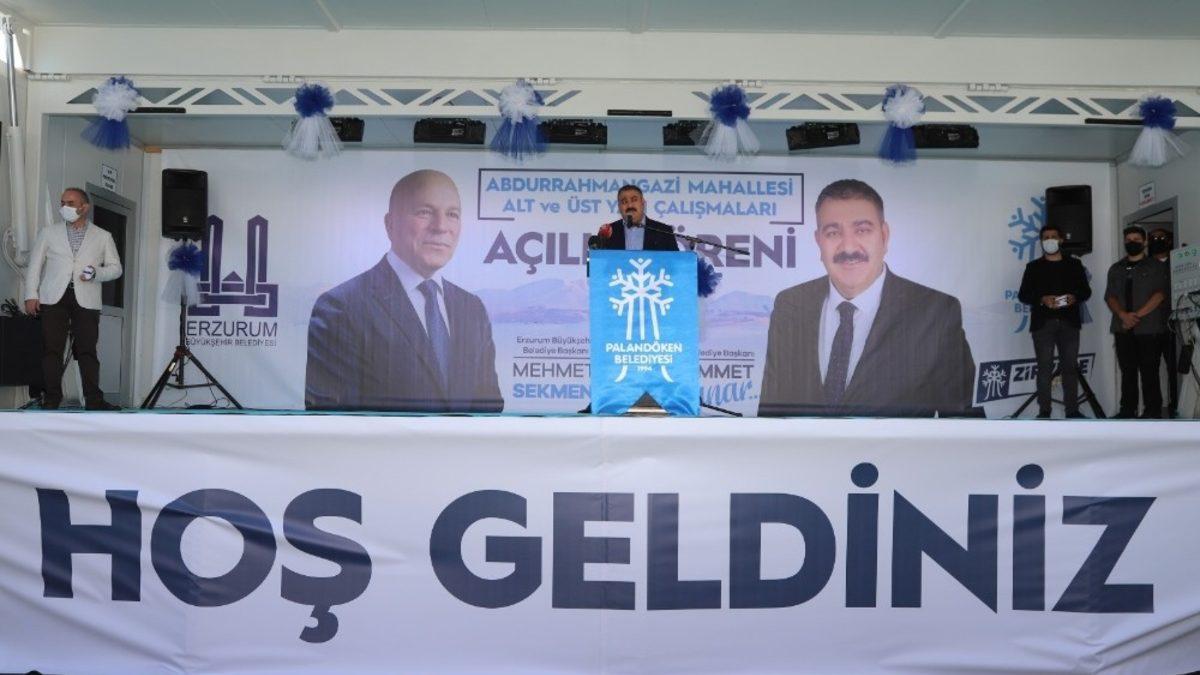 Törenin açılış konuşmasını Palandöken Belediye Başkanı Muhammet Sunar yaptı. Konuşmasına açılış törenine gösterilen yoğun ilgiden dolayı teşekkür ederek başlayan Başkan Sunar, halkla birlikte yönetim ilkesiyle, AK Belediyecilik sinerjisini mahalle-mahalle ilçeye taşıdıklarının altını çizdi. Başkan Sunar, “Tevazu, samimiyet ve gayret ile adı gibi yaşayanlarıyla da bizim için özel bir anlam içeren Abdurrahmangazi Mahallemizde onlarca sokakta yürüttüğümüz alt ve üst yapı çalışmalarımızı, TOKİ’ler mevkiinde yaptığımız prestij caddemiz ile taçlandırdık” dedi