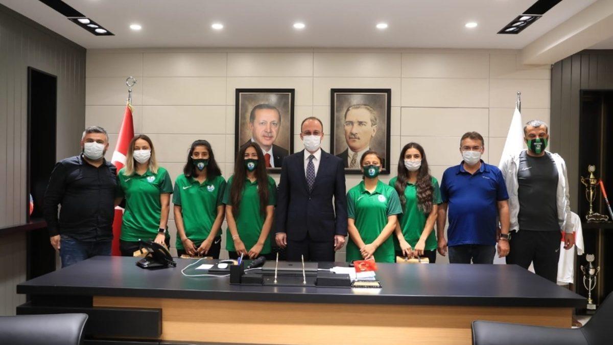 Pamukkale Belediye Başkanı Avni Örki, Denizli’yi kadınlar 2. Ligi’nde temsil eden Horozkentsporluları ağırladı. 19 yaş altı Bayan Futbol Milli Takımı’na çağrılan 5 sporcuya çeşitli hediyeler veren Başkan Örki, “Sporcularımıza milli takımlarda başarılar diliyorum” dedi.