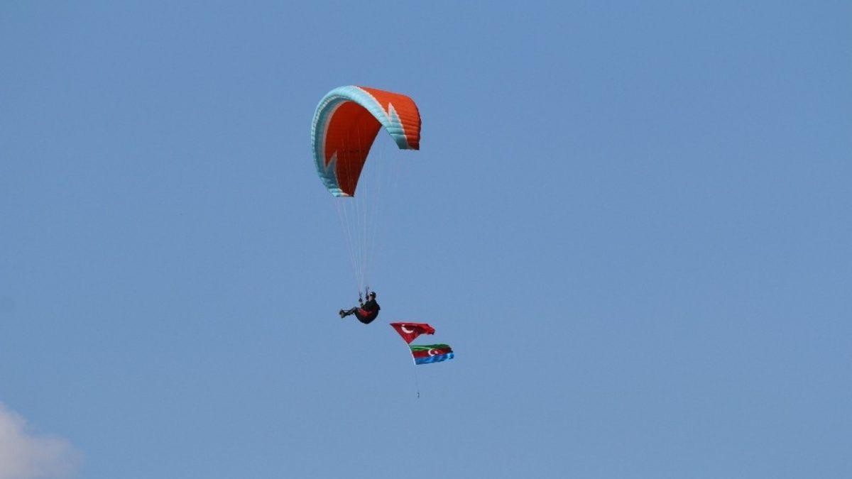 Isparta’da Ülkü Ocakları, Ermenistan’ın saldırısına maruz kalan Azerbaycan’a destek vermek amacıyla yamaç paraşütü etkinliği gerçekleştirdi. Eğirdir ilçesi semalarında gerçekleştirilen etkinlikte gökyüzünde Türk ve Azerbaycan bayrakları dalgalandırıldı.
