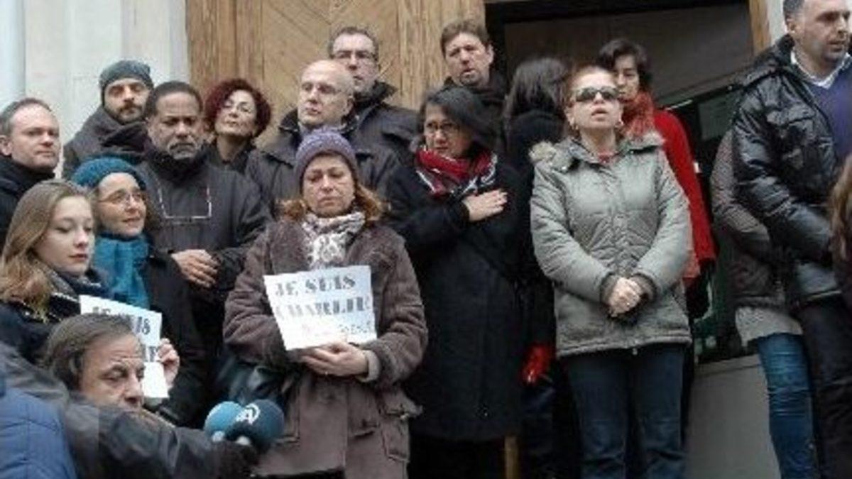 Paris’te mizah dergisi Charlie Hebdo’nun merkezine düzenlenen silahlı saldırıda hayatını kaybedenler için Fransa’nın İstanbul Başkonsolosluğu önünde saygı duruşunda bulunuldu.Beyoğlu’ndaki konsolosluk binası önünde gerçekleşen saygı duruşuna, Fransa’nın İstanbul Başkonsolosu Muriel Domenach ile İstanbul’da yaşayan Fransız vatandaşları ile çeşitli Fransız derneklerine mensup kişiler katıldı. Merasimde, Charlie Hebdo dergisinde yaşamını yitirenler için mumlar yakılırken, katılımcıların ellerinde Fransızca dilde “Ben Charlie’yim” yazılı dövizler yer aldı.Konsolosluk önünde 12 kişi için 1 dakikalık saygı duruşunun ardından Fransa’nın İstanbul Başkonsolosu Muriel Domenach gazetecilere açıklamada bulundu. Saldırı nedeniyle kendileri ile dayanışma içinde olan Türk halkına teşekkür eden ve saldırının basın özgürlüğünü savunanları derinden üzdüğünü kaydeden Domenach, “Bu olay Fransızları çok etkiledi. Ve bütün basın özgürlüğüne önem veren herkesi çok etkiledi. Aldığımız dayanışma ve taziye mesajları çok etkiledi. En önemlisi, birçok Türk bize taziye dileklerini dile getirdi. Bu bizi çok etkiledi. Bugün Fransa’da ‘Milli Yas’ ilan edildi. Bayraklar yarıya indirildi. Özetle; böyle bir günde İstanbul’da bize karşı gösterilen dayanışma çok etkileyiciydi” dedi.SALDIRIDA ÖLEN GEORGES WOLINSKI BİRKAÇ YIL ÖNCE İSTANBUL’A GELMİŞSaldırıda yaşamını yitiren çizerlerden Georges Wolinski’nin birkaç yıl önce İstanbul’a geldiğini ifade eden ve onunla yaşadıkları hatırasını paylaşan Fransız Konsolos, “Ölen çizerlerden biri Wolinski İstanbul’a gelmişti. Onu Fransız Kültür Merkezinde ağırlamıştık. Bu yüzden anımız da vardı. Çok üzgünüm” dedi. “Wolinski’nin sözleri burada çok anlamlı” diyen Domenach, yaşamını yitiren çizerin kendisine, “Söylediklerinize katılmıyorum, ama düşüncelerinizi dile getirebilmeniz için ölümüne kadar savaşabilir” dediğini aktardı.Yapılan saygı duruşunun ardından tören sona erdi.