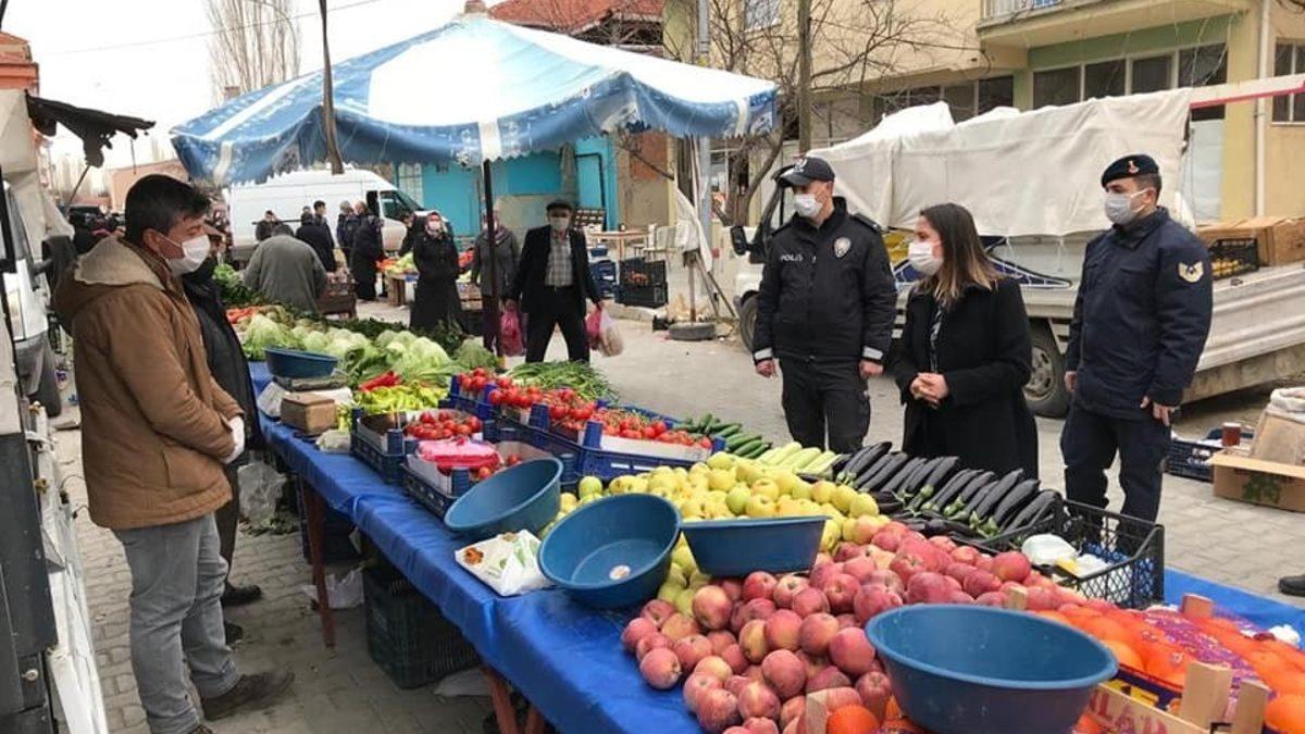 İlçede sosyal hayatta önemli yer tutan halk pazarında sıkı denetim yapıldığını belirten Kaymakam Armağan Yazıcı, ’’Pazar yerimizin ana girişlerini araç girişlerine kapatarak, vatandaşlarımızın sosyal mesafe alanlarının daraltılmasının önüne geçilmeye çalışıldı. Pazara gelen vatandaşlarımıza ve esnafımıza salgın konusunda uymaları gereken; maske, mesafe ve hijyen kuralları hatırlatıldı. Görevlendirilen kolluk kuvvetlerimizle; pazar esnafı ve vatandaşlarımızın kurallara uyup uyulmadığının denetimi, kalabalık oluşturabilecek ve pazar alanı içerisinde bulunan kafe, lokal ve kıraathanelerin sürekli denetimi gerçekleştirildi. Denetimlerimiz aralıksız olarak devam edecek’’ ifadelerini kullandı.