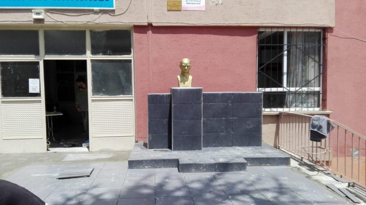 Bilecik’in Pazaryeri ilçesinde Atatürk Ortaokulu bahçesinde bulunan Atatürk büstü yenileniyor.