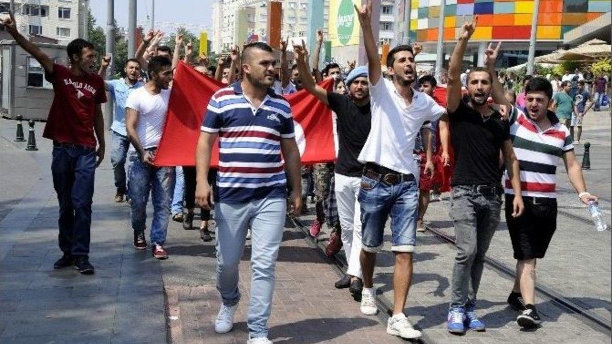 Antalya’da bir grup genç, son günlerde artan terör olaylarını protesto etti. Protestoya plakasız motosikletle katılıp çevreye rahatsızlık veren gençlere ise trafik polisi tarafından cezai işlem uygulandı.Terör eylemlerine tepki göstermek için sosyal medya üzerinden bir araya gelen yaklaşık 60 kişi, ellerinde Türk bayraklarıyla Muratpaşa Cami karşısında toplandı. Sloganlarla yürüyüşe geçen grubun, kalabalığın yoğun olarak bulunduğu Kazım Özel Caddesi’ne (Kapalıyol) girmesine polis tarafından izin verilmedi. Grubun, girmeye ısrar etmesi üzerine polisle aralarında kısa süreli tartışma çıktı. Gençler, HDP’lilerin yürümesine izin verildiğini kendilerine, yasak getirildiğini savundu. Grup, polisin gösterdiği Hasan Subaşı Caddesi bisiklet yolundan Cumhuriyet Meydanı’na yürüdü. "Şehitler ölmez vatan bölünmez", "Kahrolsun PKK" gibi sloganları atan gençlere, vatandaşlar da destek verdi. Grubun içindeki bazı gençlerin mavi bere takması dikkat çekti. Gençler, Atatürk Anıtı önünde şehitler için saygı duruşunda bulunup, İstiklal Marşı’nı okudu. Yaklaşık 40 dereceyi bulan sıcak havada yürüyüş yapan gençler, ardından gölge alana geçti. Bir süre sonra gruba, aralarında plakaları da bulunmayan 10 motosikletli genç katıldı. Açık egzozla meydanda gürültü yapıp, plakasız şekilde trafiğe çıkmak isteyen motosikletli gençler, trafik polisleri tarafından durduruldu. Trafik polisleri bazı motosikletlerin kontak anahtarını alırken, bazılarını direksiyonundan tuttu. Gençlerin motosikletleri vermek istememesi üzerine araya Trafikten Sorumlu İl Emniyet Müdür Yardımcısı Mehmet Cem Gencer girdi.Gencer, plakasız motosikletlerin trafiğe çıkmasının yasak olduğunu belirterek, cezai işlem uygulanacağını söyledi. Gençler, bir süre polise dirense de motosiklet sahipleri ceza yemekten kurtulamadı.Bir süre daha ellerindeki bayraklarla slogan atan grup, olaysız bir şekilde dağıldı.