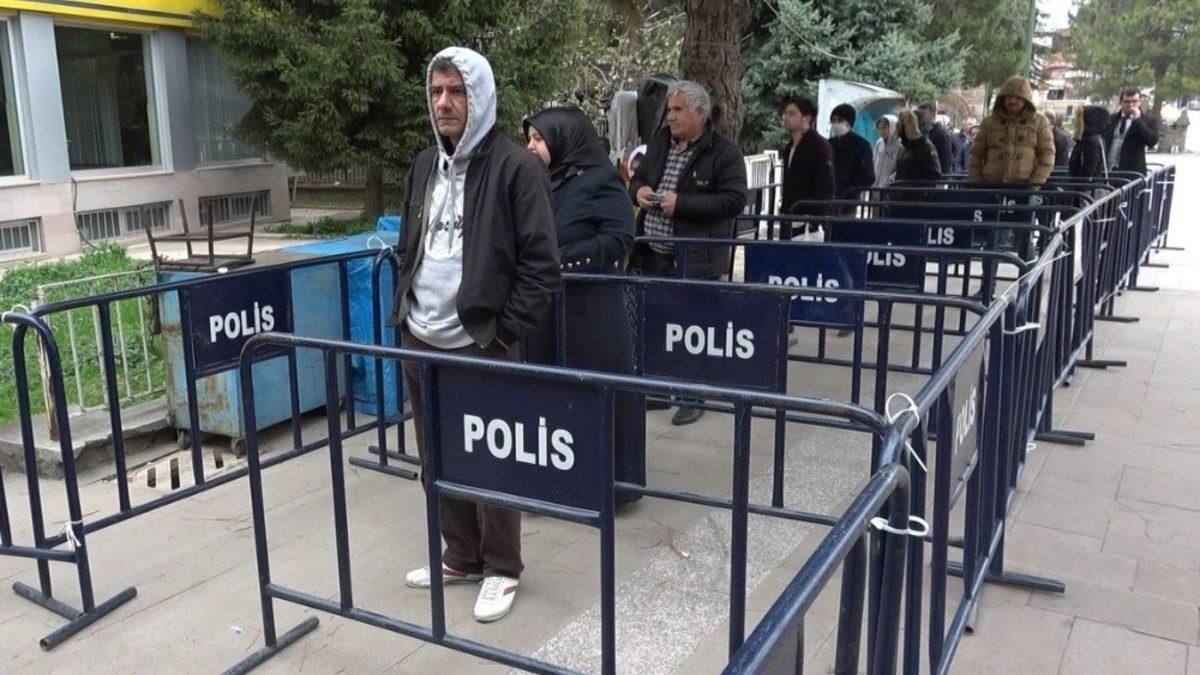 Tokat’ta kuyrukta bekleyen vatandaşların sosyal mesafesini koruması için polis barikatlarıyla önlem alındı.