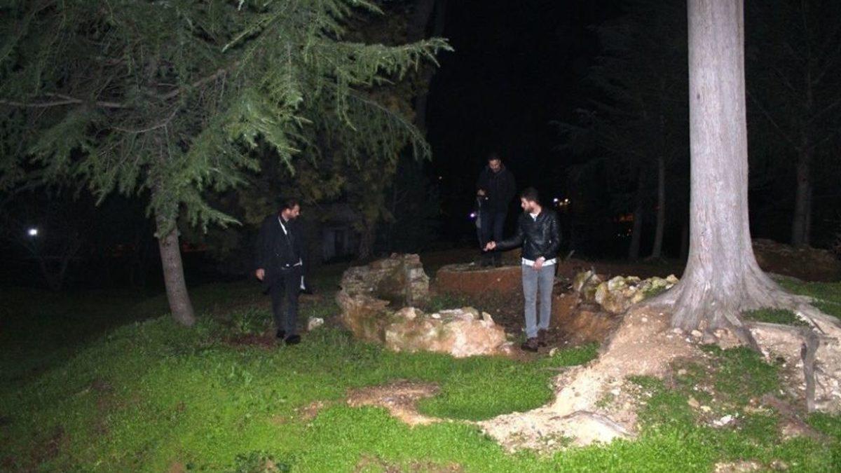 Balıkesir’in Ayvalık ilçesinde polis define avcılarının peşine düştü.Yazar Ahmet Yorulmaz’ın Osmanlı sadrazamlarından Cezayirli Hasan Paşa’nın Ayvalık’a gelip konakladığı ev olarak rivayet ettiği eski fidanlık bahçesinde yasa dışı kazı yapıldığına dair ihbarı değerlendiren ekipler, halen ünlü bir işadamına ait olduğu belirtilen tarihi evin içinde ve bahçesinde define avcılarının izini sürdü. Yarım saate aşkın bir süre ellerinde fenerlerle araştırma yapan KOM ekipleri kayda değer bir ize rastlayamadı. Polislerin gelmesinden sadece 5 dakika önces söz konusu bölgede bir otomobilin bulunduğu öne sürüldü. Bölgede araştırmalar sürüyor.
