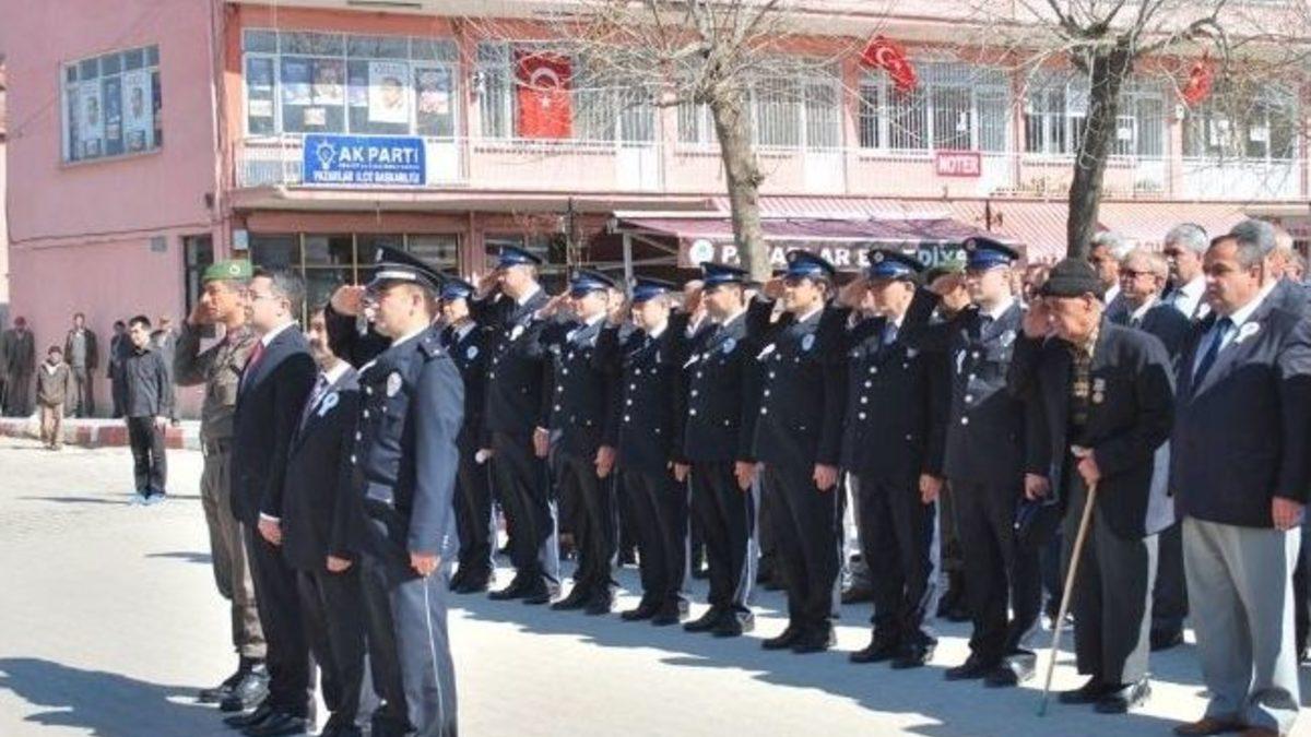 Türk Polis Teşkilatının kuruluşunun 169. yılı nedeniyle Pazarlar ilçesinde tören düzenlendi.Cumhuriyet meydanında Atatürk büstüne çelenk sunulmasının ardından, şehit polisler için saygı duruşunda bulunuldu ve İstiklal Marşı okundu.Törende günün anlam ve önemi ile ilgili konuşmayı İlçe Emniyet Amiri Fikret Gün yaptı. Emniyet Amiri Gün, “ Bugün Türk halkının sevgi ve güvenini kazanmış, Demokratik hukuk devletinin, Atatürk ilke ve inkılaplarının, Laik Cumhuriyetin teminatı olan Türk Polis Teşkilatının 169. kuruluş yıl dönümünü sizlerle kutlamaktan büyük gurur ve mutluluk duyduğumuzu belirtiriz. Bizler bu görevi yerine getirirken, demokratik, laik ve sosyal hukuk devletinin bir kurumu olduğumuzu asla unutmuyoruz. Çünkü; adalete dayanmayan güç zorbalıktır, zalimliktir; ama kuvvete dayanmayan adalette aciz olur. Hukuk devletinde Polis adalete dayalı bir kuvvettir. Onun için zalim değil adaletlidir. Korkulan değil, güvenilen güçtür ” diye konuştu.İlk, ortaokulları ve liseler arasında düzenlenen Polis haftası konulu şiir, kompozisyon ve resim yarışmasında dereceye giren öğrenciler çeşitli hediyelerle ödüllendirildi. Öğrenciler tarafından polis haftası ile ilgili şiirler okundu.Program sonunda Pazarlar Emniyet Amirliği hizmet binasında programa katılanlara ikramda bulunuldu.Emniyet teşkilatının 169. kuruluş yıl dönümü törenine Pazarlar Kaymakamı İshak Çınar, Garnizon Komutanı Cengiz Kuzu, İlçe Belediye Başkanı Cavit Erdoğan, daire amirleri, polisler ve vatandaşlar katıldı. (MB-EFE)