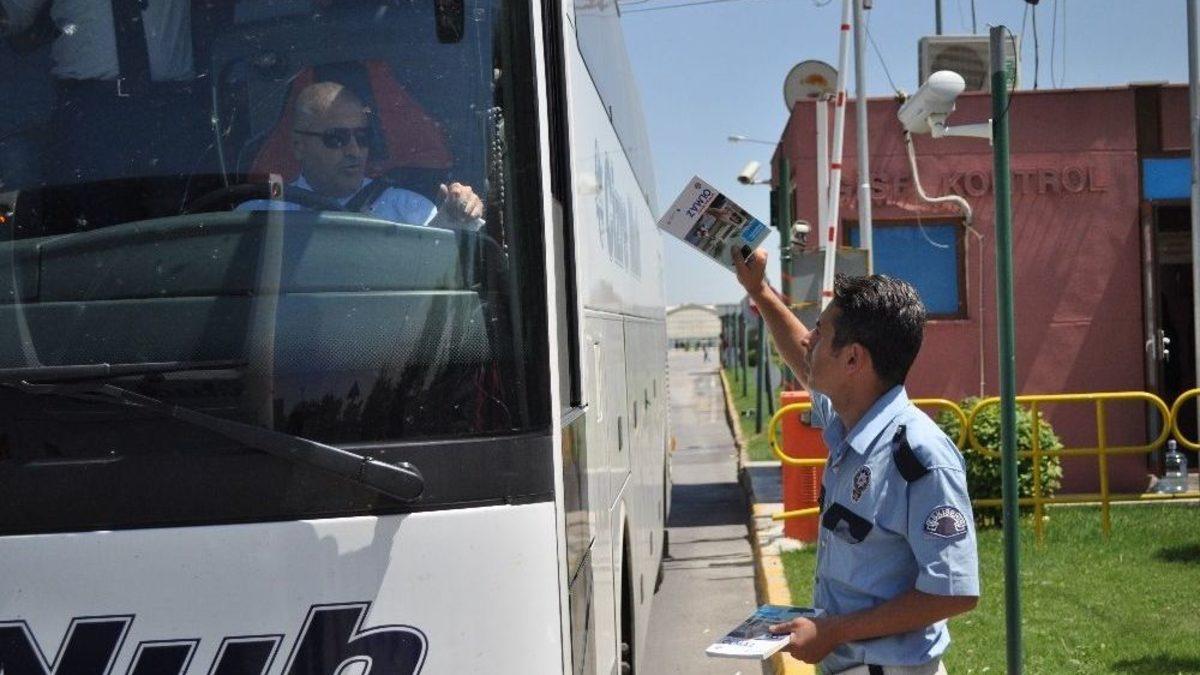 Eskişehir İl Emniyet Müdürlüğü Trafik Denetleme Şube Müdürlüğü ekipleri, yaklaşan Ramazan Bayramı dolayısı ile karayollarında meydana gelecek yoğunluk nedeniyle şehirlerarası yolculuk yapan otobüs şoför ve yolcuları bilgilendirdi.Yaklaşan Ramazan Bayramı öncesi her yıl olduğu gibi bu yıl da Eskişehir Eminyet Müdürlüğü Trafik Denetleme Şube Müdürü ekipleri karayollarında denetimlerini artırdı. Özellikle şehirlerarası trafik yoğunluğunun artacağı bu günlerde trafik ekipleri, uzun mesafe yolculuk yapan otobüsleri otogar çıkışında durudurularak şoför ve yolcular için temel trafik bilgilendirmesi yaptı. Araç şoförlerini azami hız, kemer takma ve benzeri konularda uyaran ekipler, yolculara da temel trafik bilgilerinin yer aldı el broşürleri dağıttı.“Sürücülerimizin ve yolcularımızın güvenli bir şekilde yolculuk yapmalarını sağlayacağız”Seyehat güvenliğini sağlamak amacıyla denetimlerin arttığını belirten, Eskişehir İl Emniyet Müdürlüğü Trafik Denetleme Şube Müdürü Recai Öz, “Bayram süresince artan trafik yoğunluğunu göz önünde bulundurarak otogar çıkışlarında yolcularımızın ve şoförlerimizin can, mal ve seyehat güvenliğini sağlamak amacıyla bayram tatili süresince eğitim ve denetim faaliyetlerimiz devam edecektir. Otogardan çıkacak otobüs sürücü ve yolcularına hem bilgilendirme yapacağız hem de el broşürü dağıtacağız. Sürücülerimizin ve yolcularımızın güvenli bir şekilde yolculuk yapmalarını sağlayacağız. Bu tedbirlerimiz bayram süresince devam edecektir” ifadelerini kullandı.